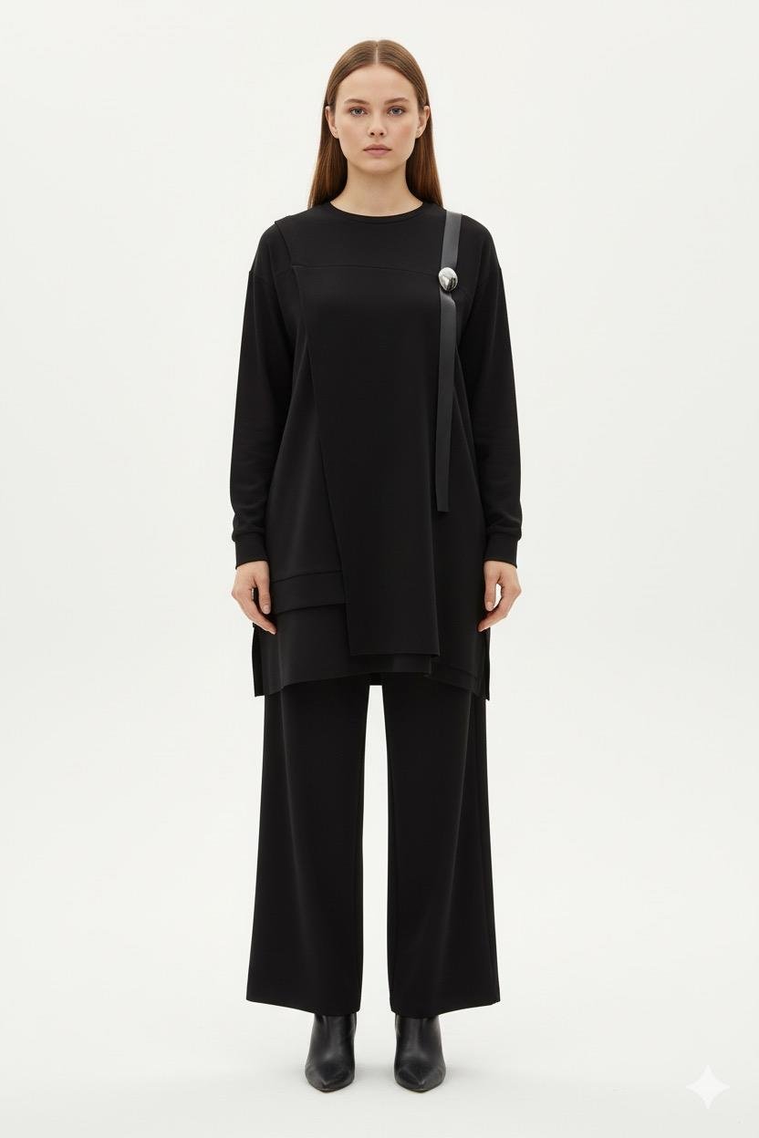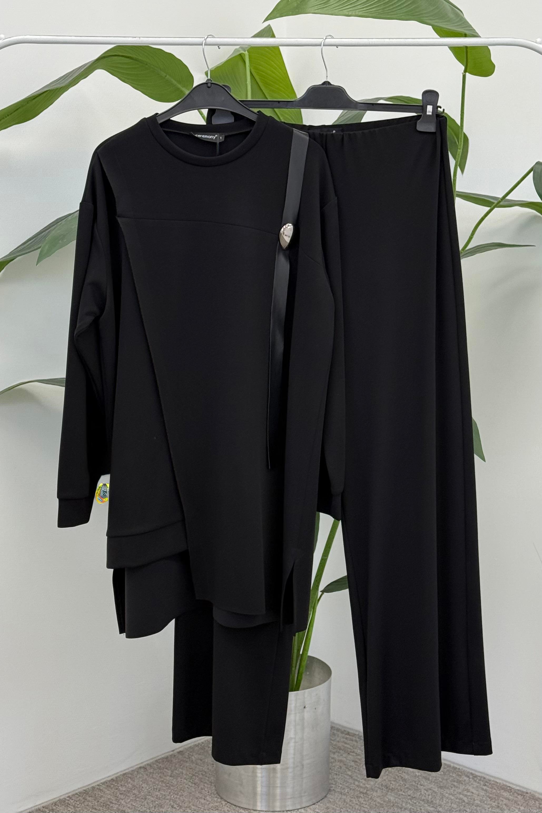 Ceremony 6933 Omuzu Aksesuar Detaylı Pantolonlu Takım - Siyah (350144912)