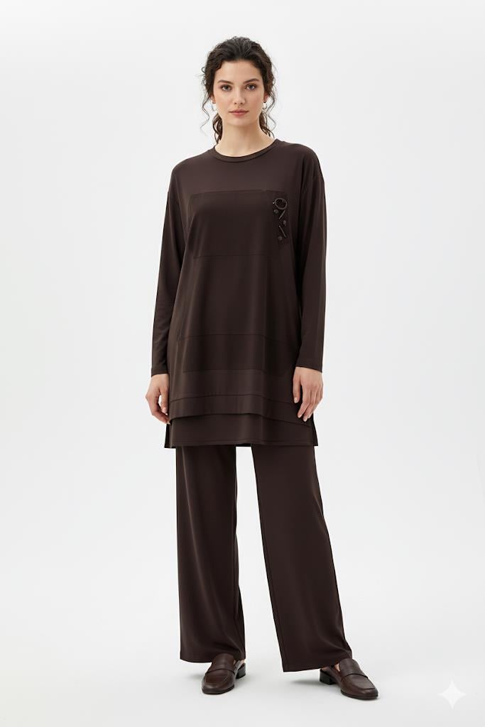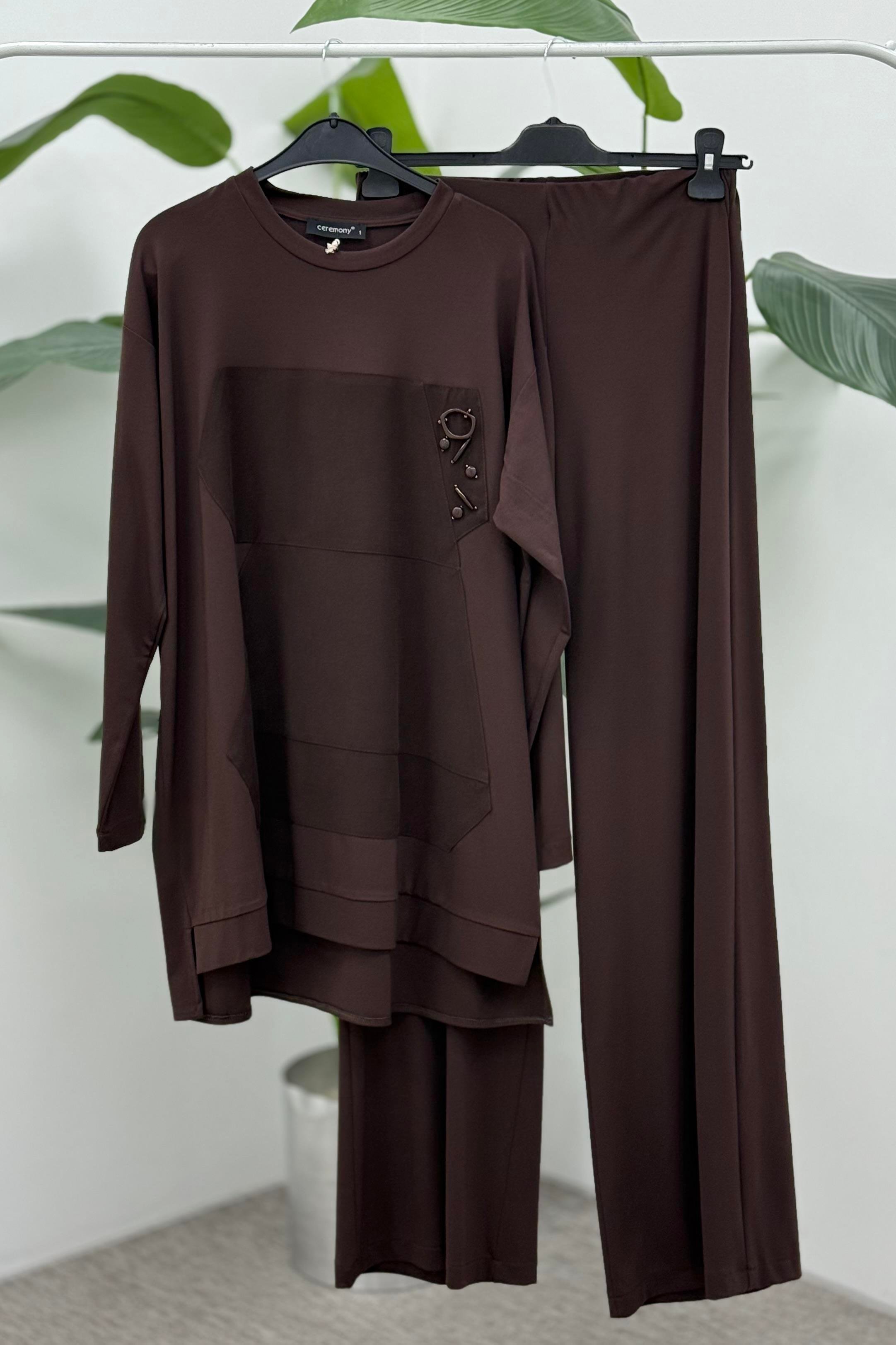 Ceremony 6941 Sol Göğüsü İşlemeli Pantolonlu Takım - Kahverengi