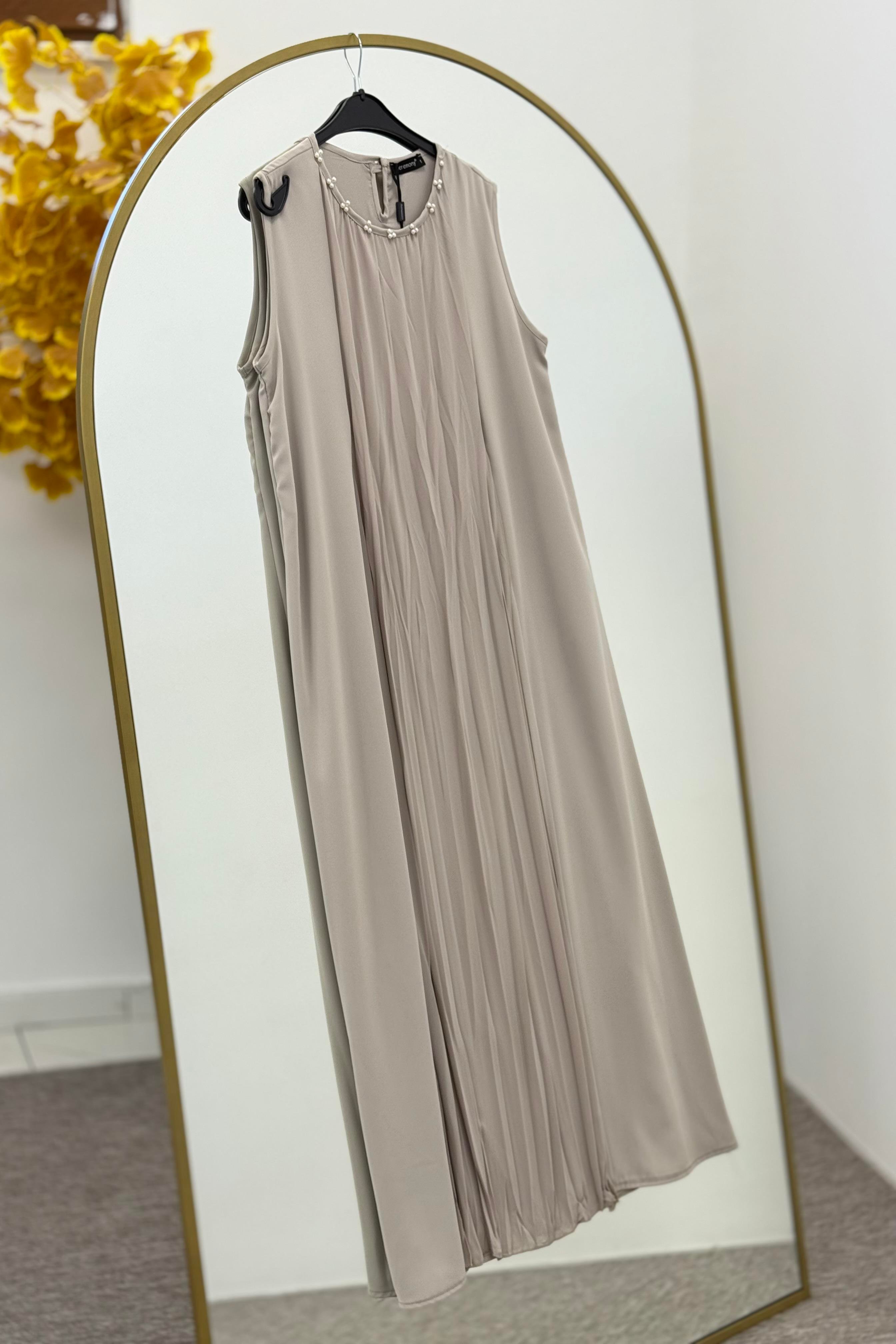 Ceremony S-5708 Yakası İnci Detay Kolsuz Vien Elbise - Taş (363144808)