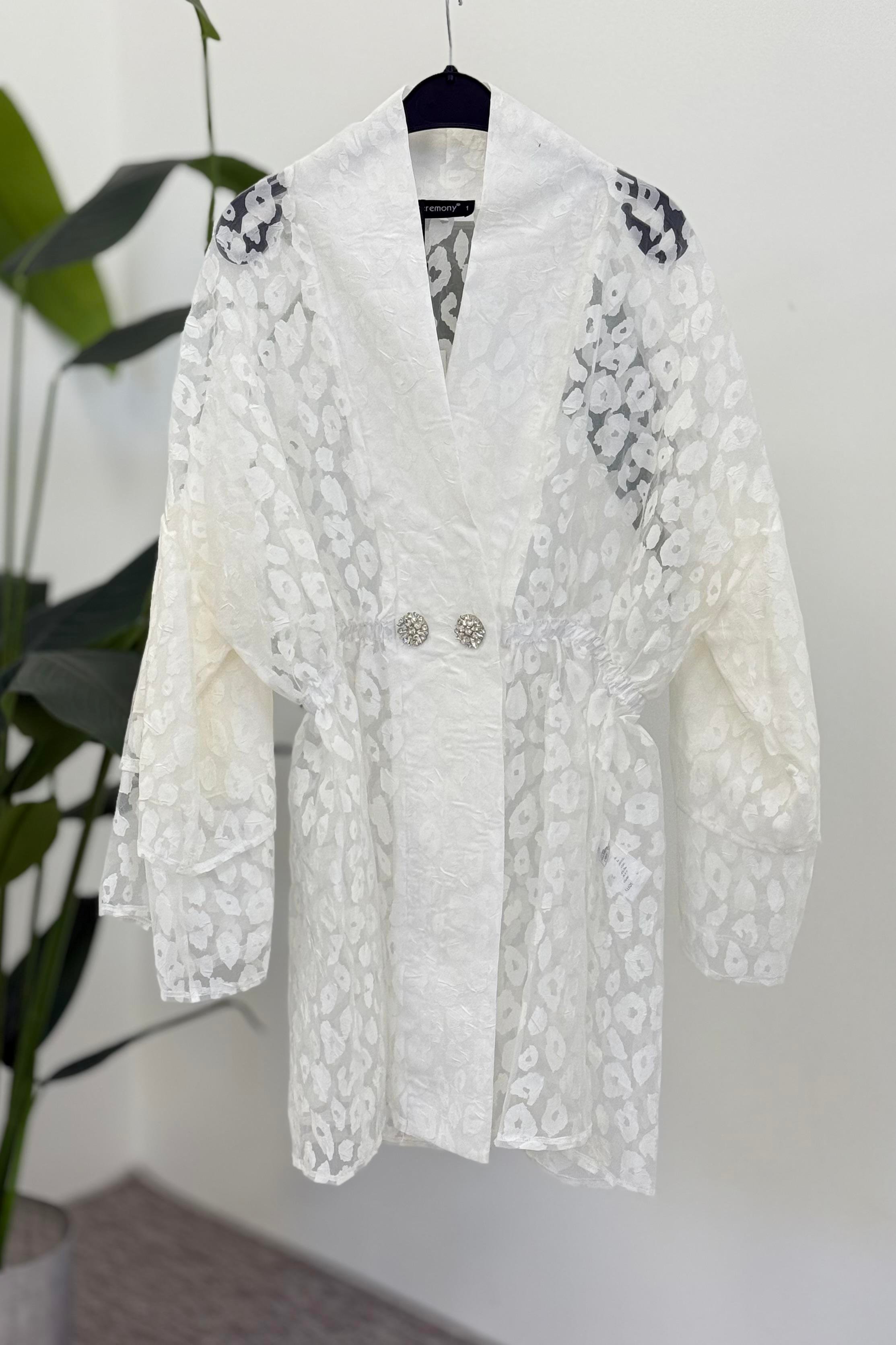 Ceremony S-5821 Beli Lastik Ve Çıtçıtı Aksesuarlı Kısa kap - Ekru (378144810)