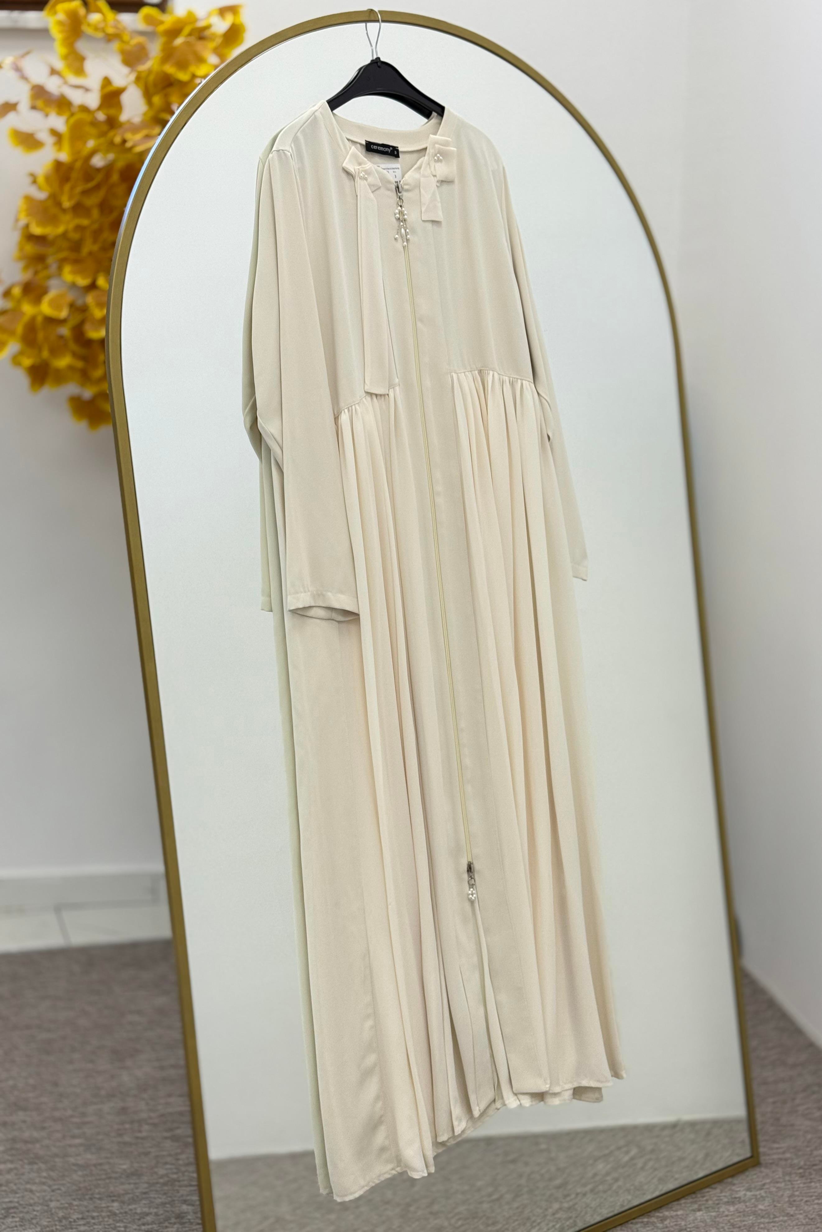 Ceremony S-5859 Fermuar Ve Yakası İnci Detaylı Vien Kap - Ekru