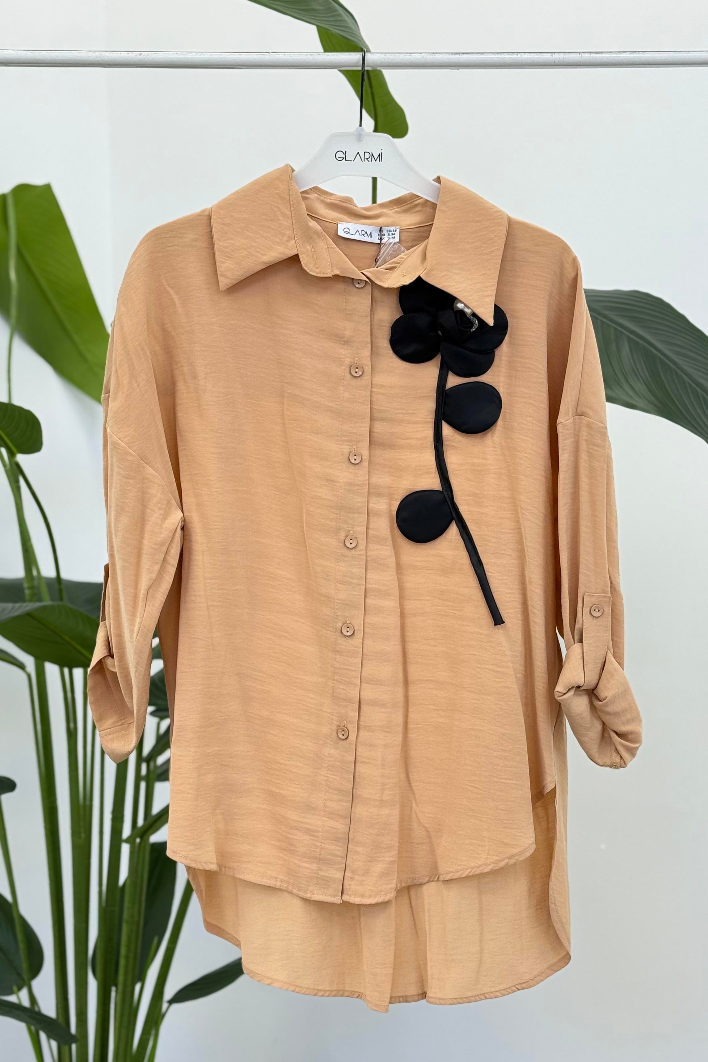 Çiçek Detaylı Gömlek 1003410 - Camel (362132823)