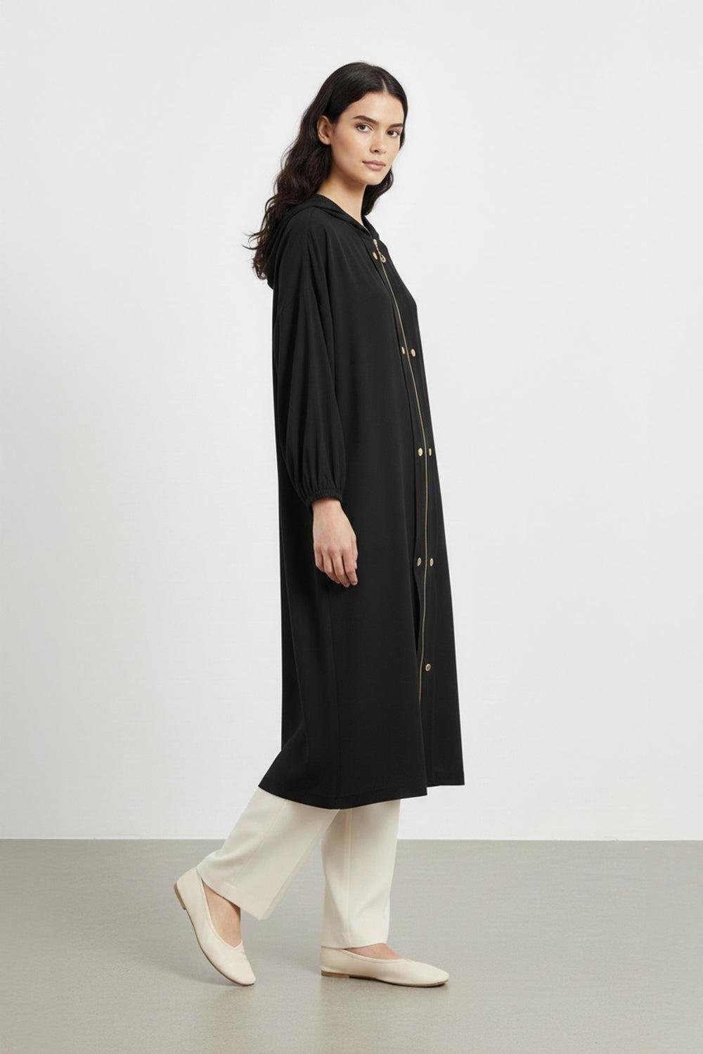 Çift Düğme Detaylı Fermuarlı Kap 15251 - Siyah