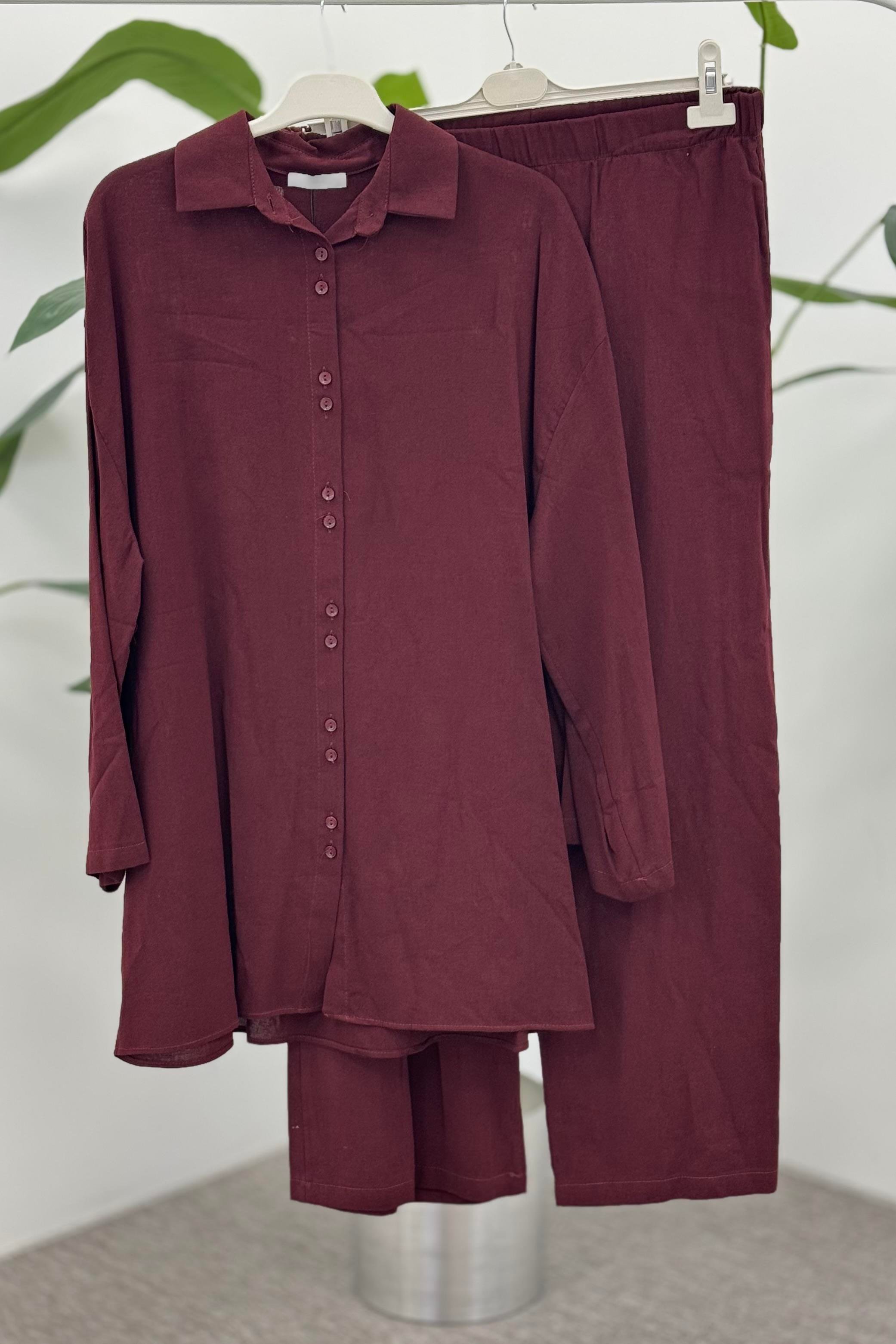 Çift Sıra Düğme Detay Pantolonlu Takım 20694 - Burgundy (350251824)