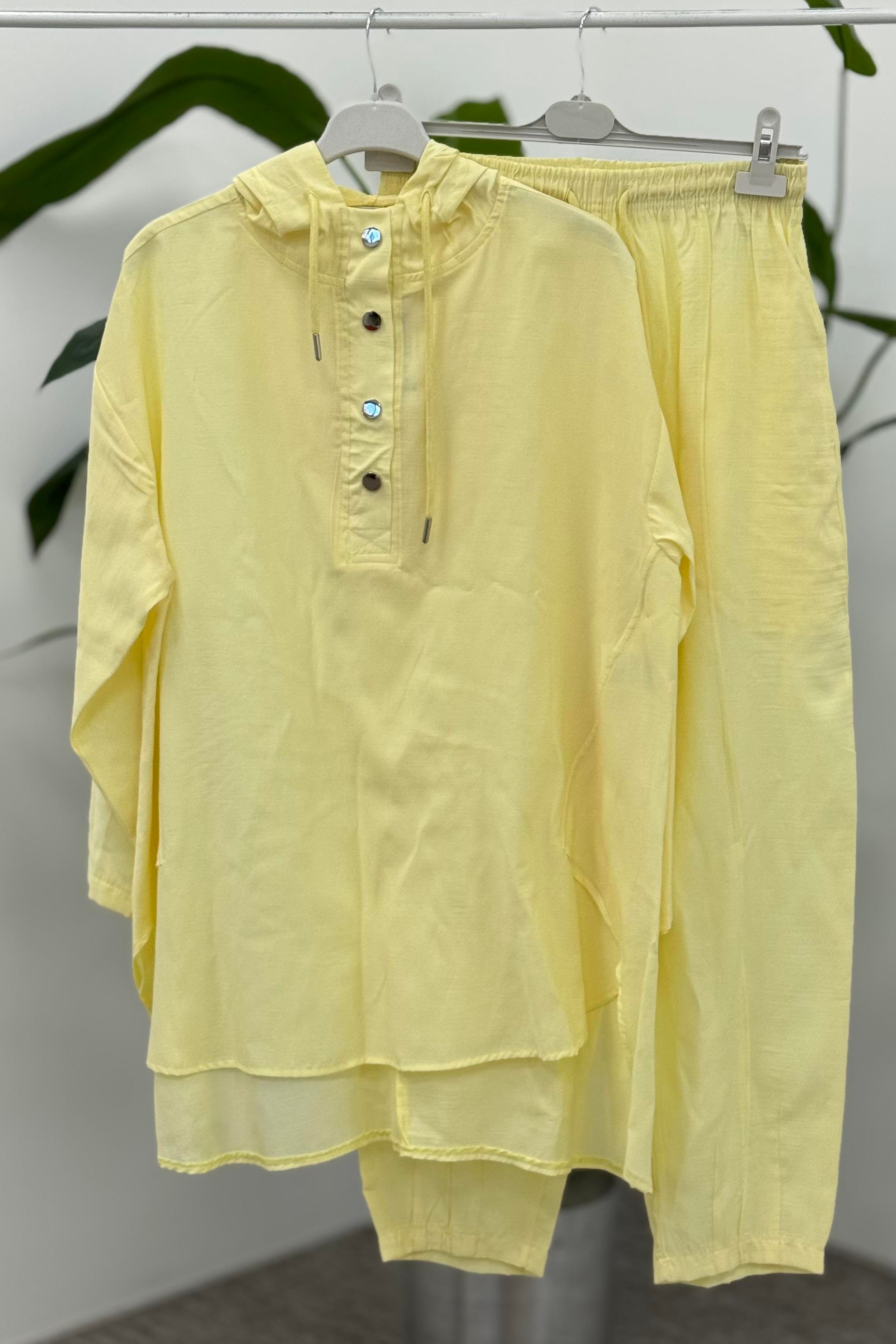 Çıt Çıt Detaylı Kapüşonlu Pantolonlu Takım 20609 - Sarı