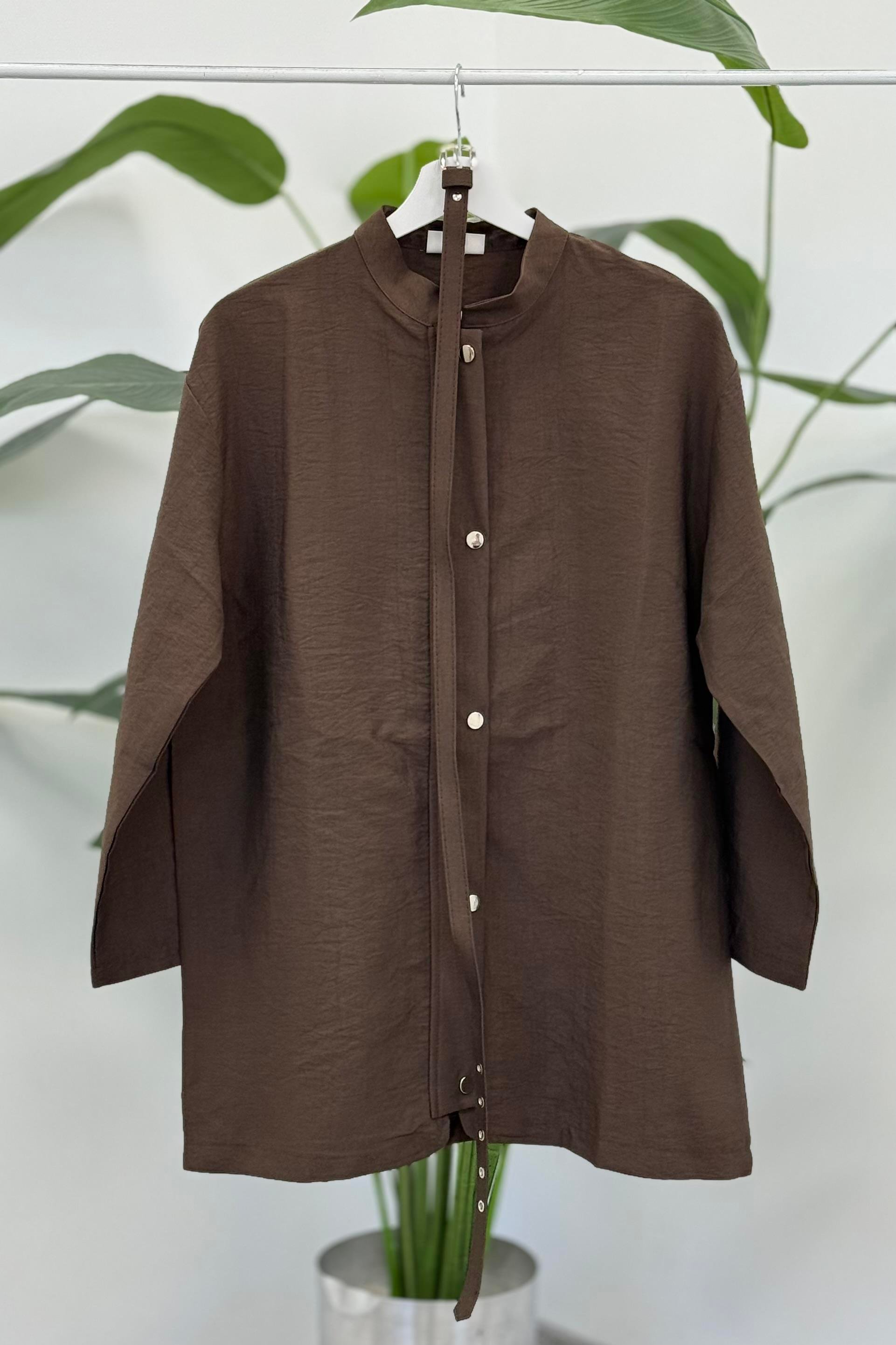 Çıtçıtlı Kemerli Ceket 3017 - Kahve