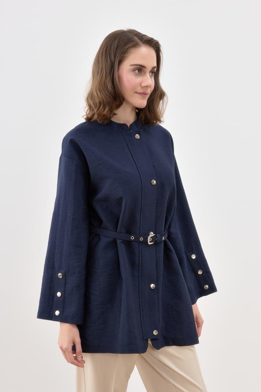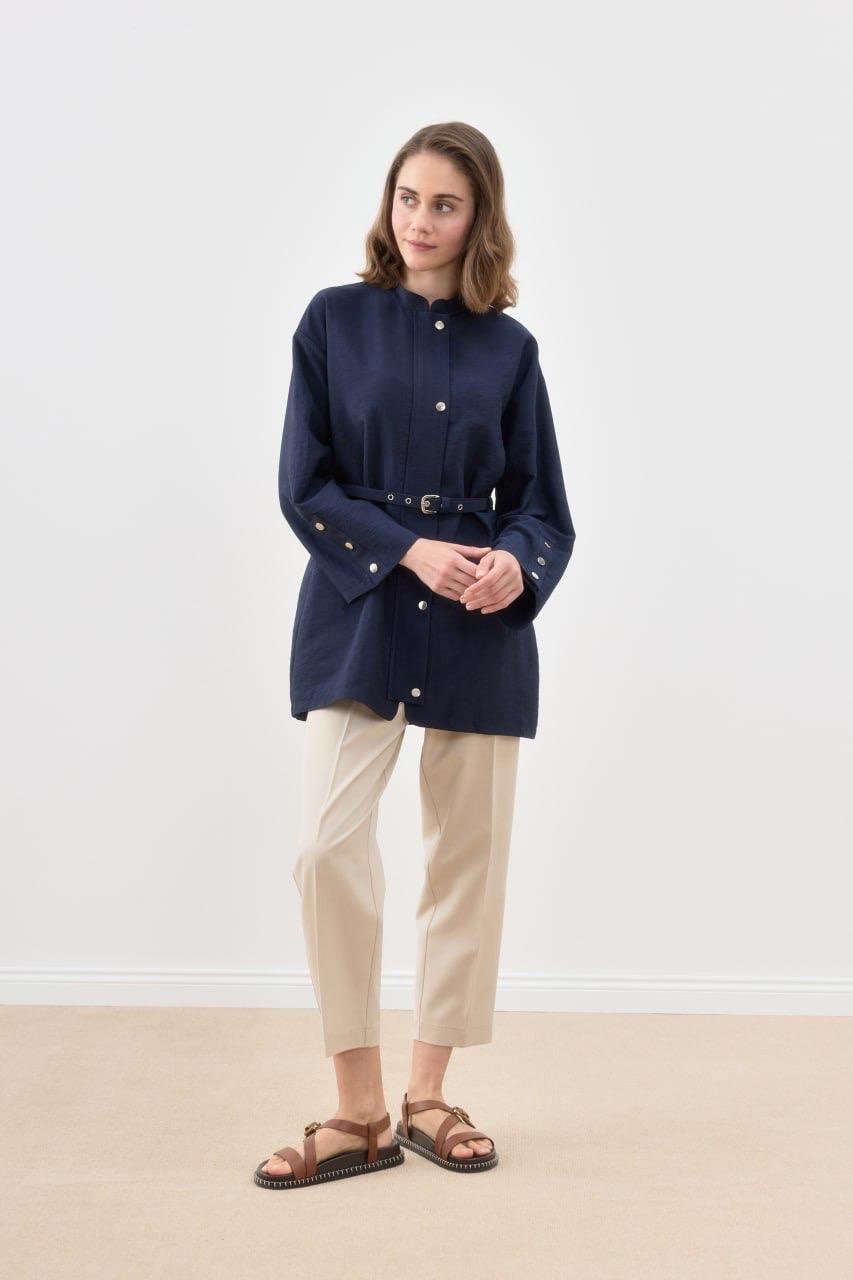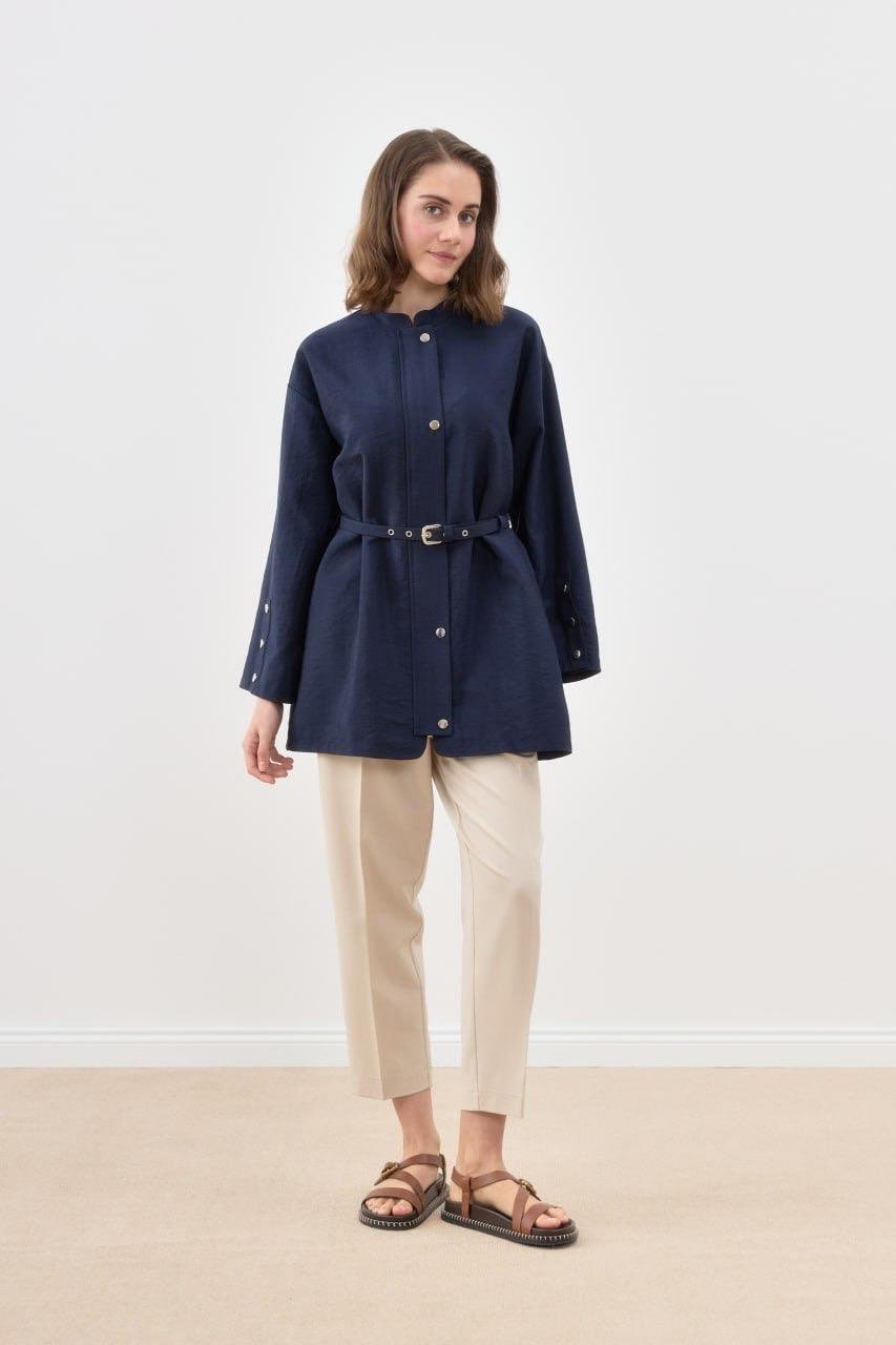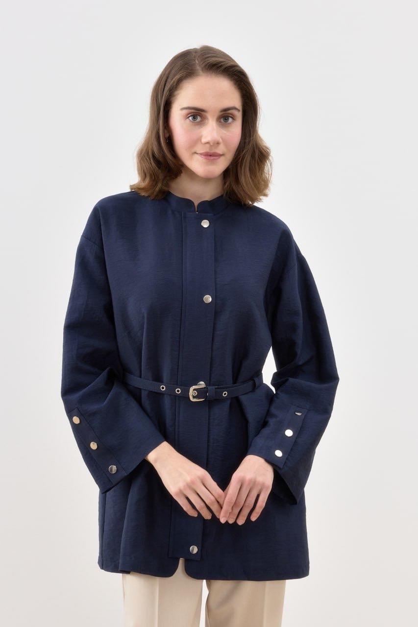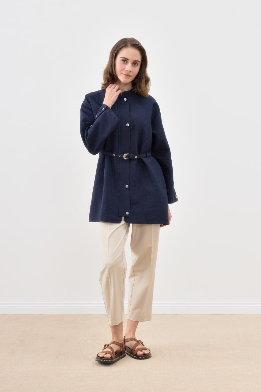 Çıtçıtlı Kemerli Ceket 3017 - Lacivert