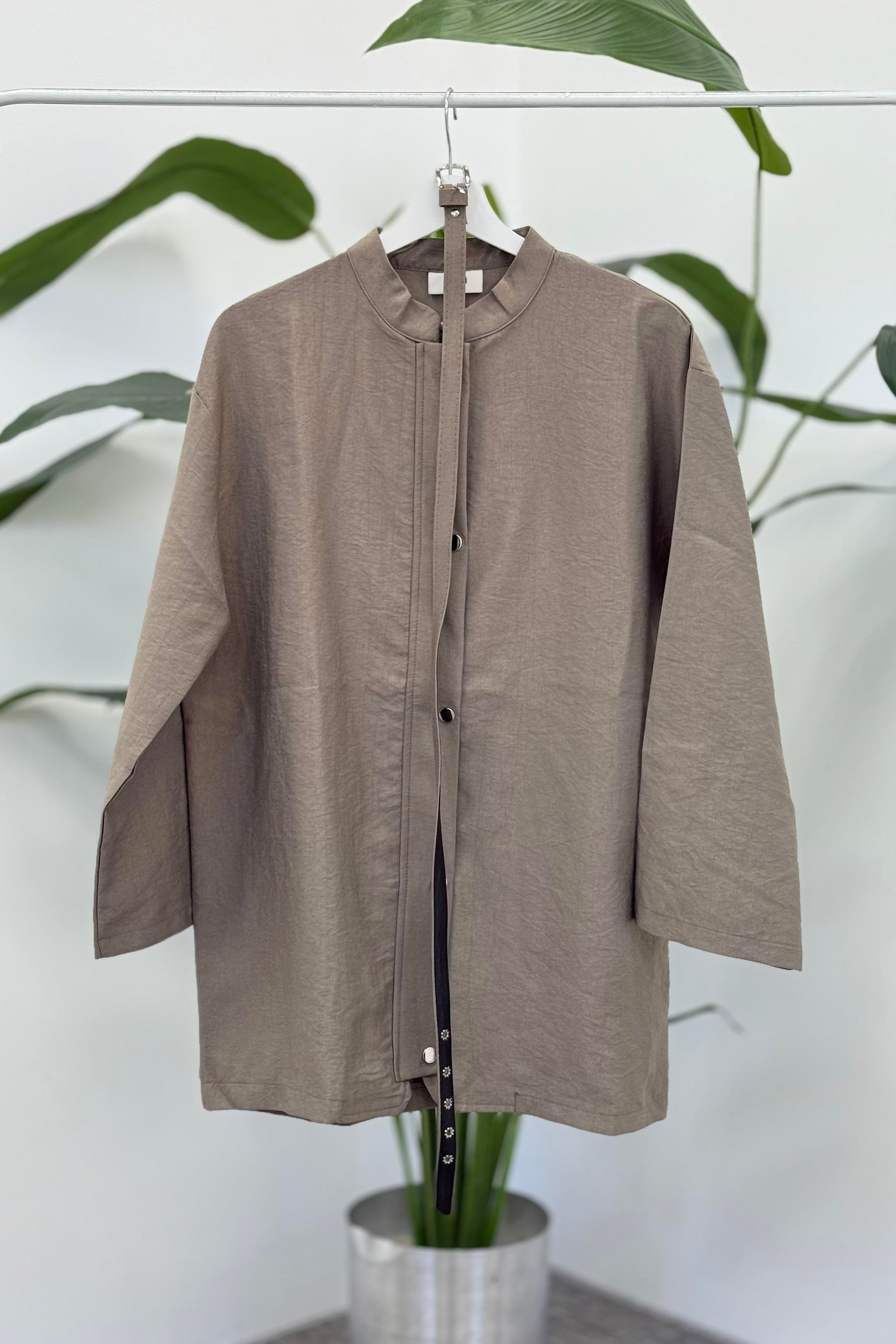 Çıtçıtlı Kemerli Ceket 3017 - Vizon