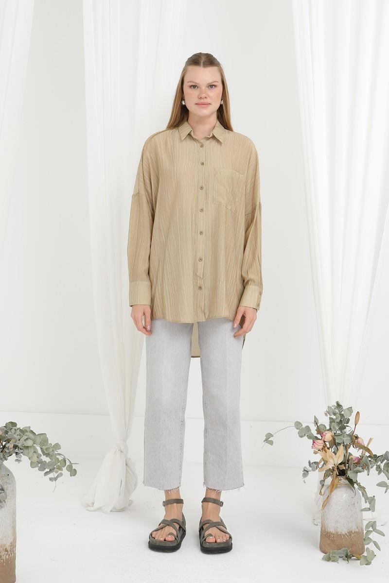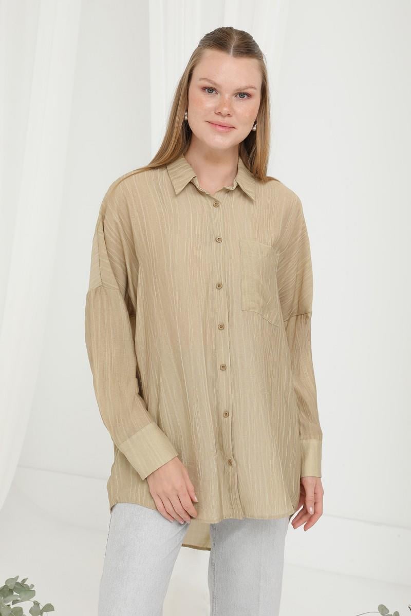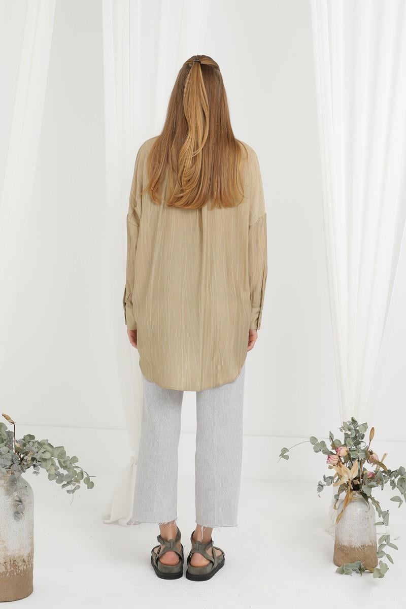 Çizgi Detaylı Gömlek Tunik 20645 - Vizon Çizgi Detaylı Gömlek Tunik 20645 - Bej