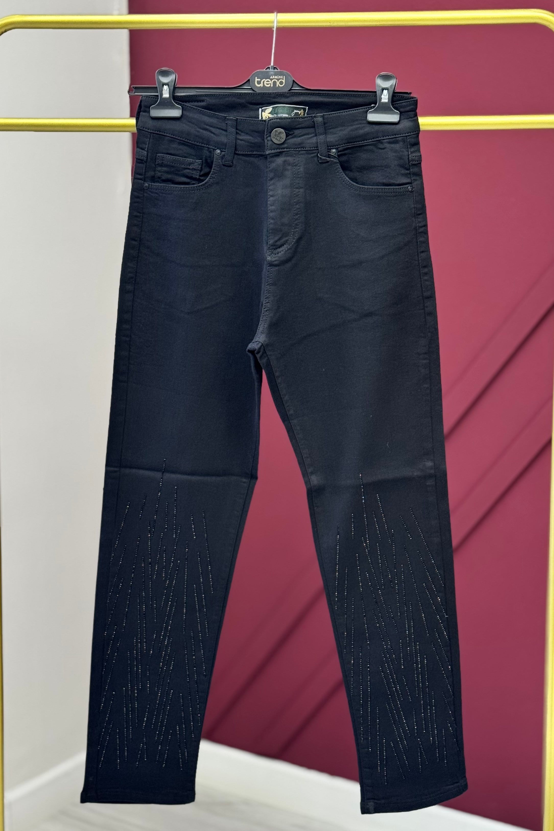 Çubuk Taş İşlemeli Mom Pantolon 0291-ÇT - Siyah