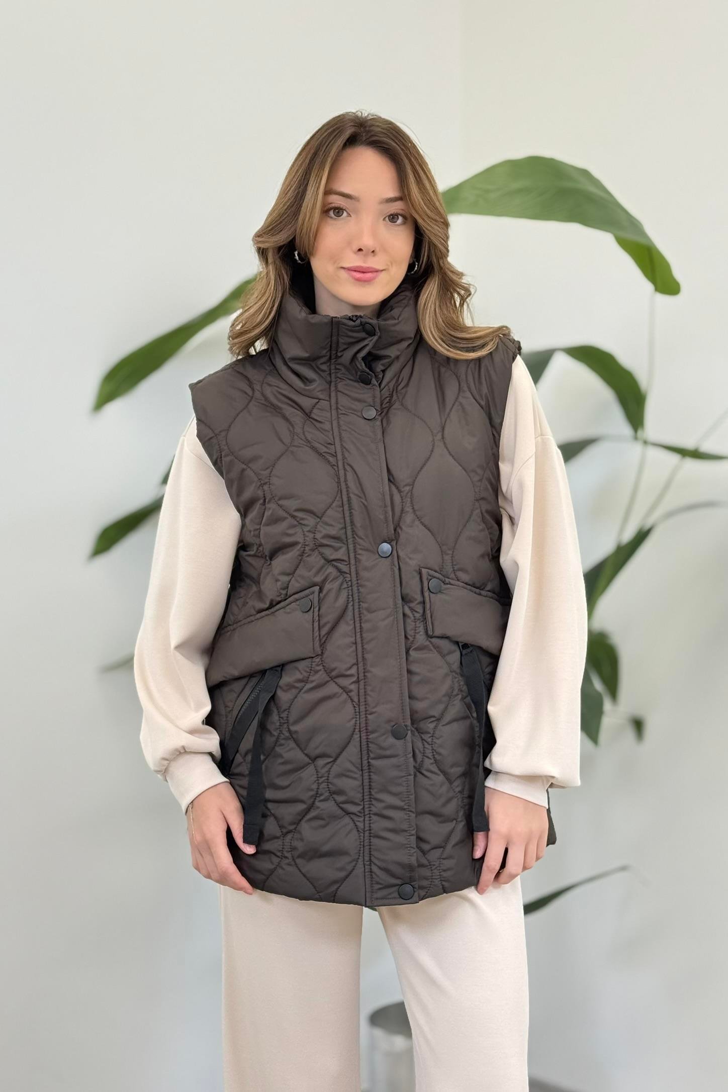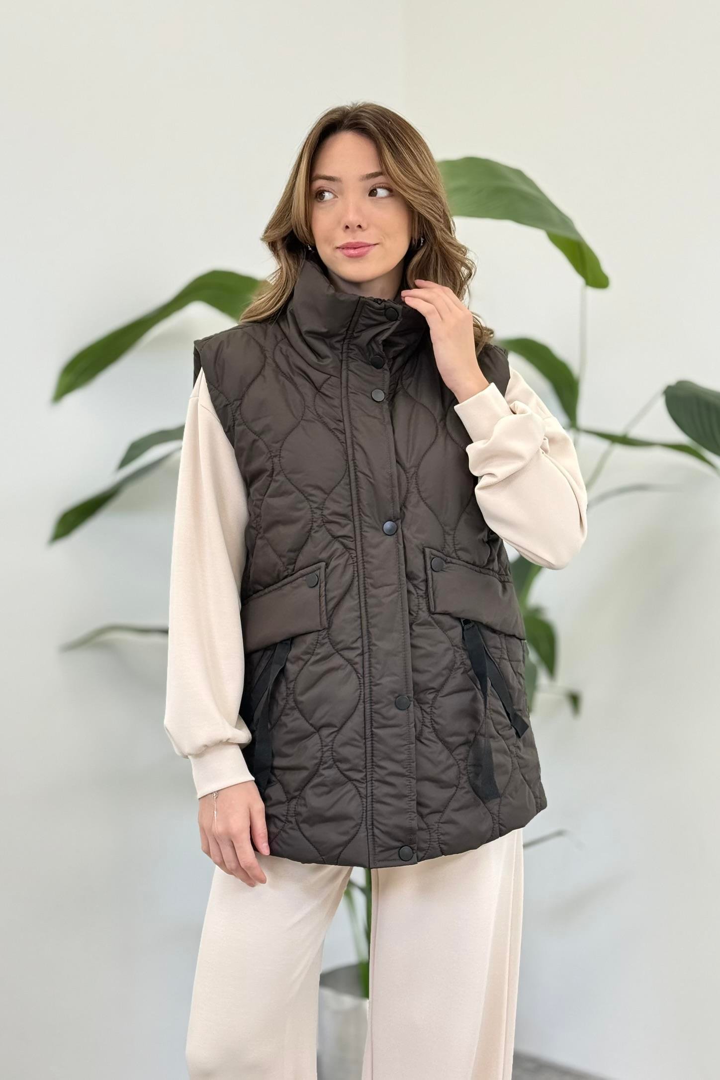 Dik Yaka Şişme Yelek 0035283 - Haki (367132900)