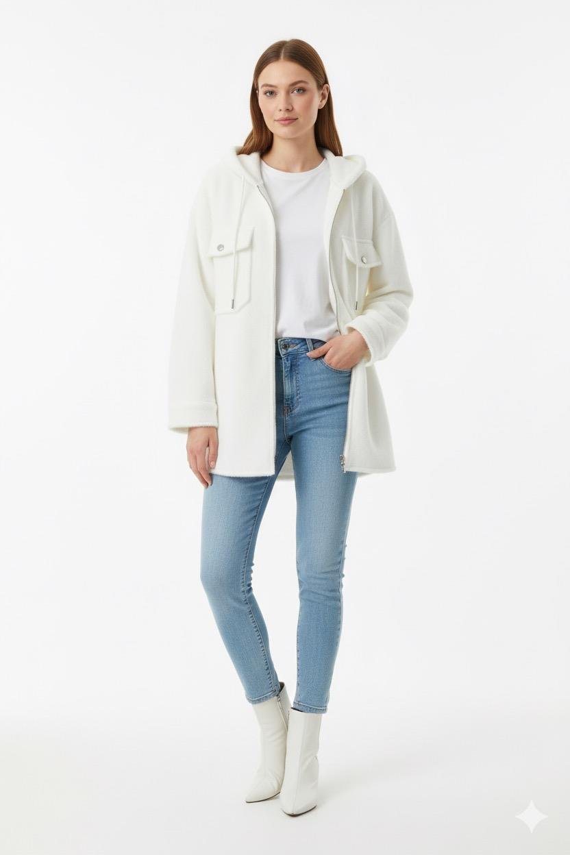 Fermuarlı Kaşe Bomber 0033722 - Ekru (354132904)
