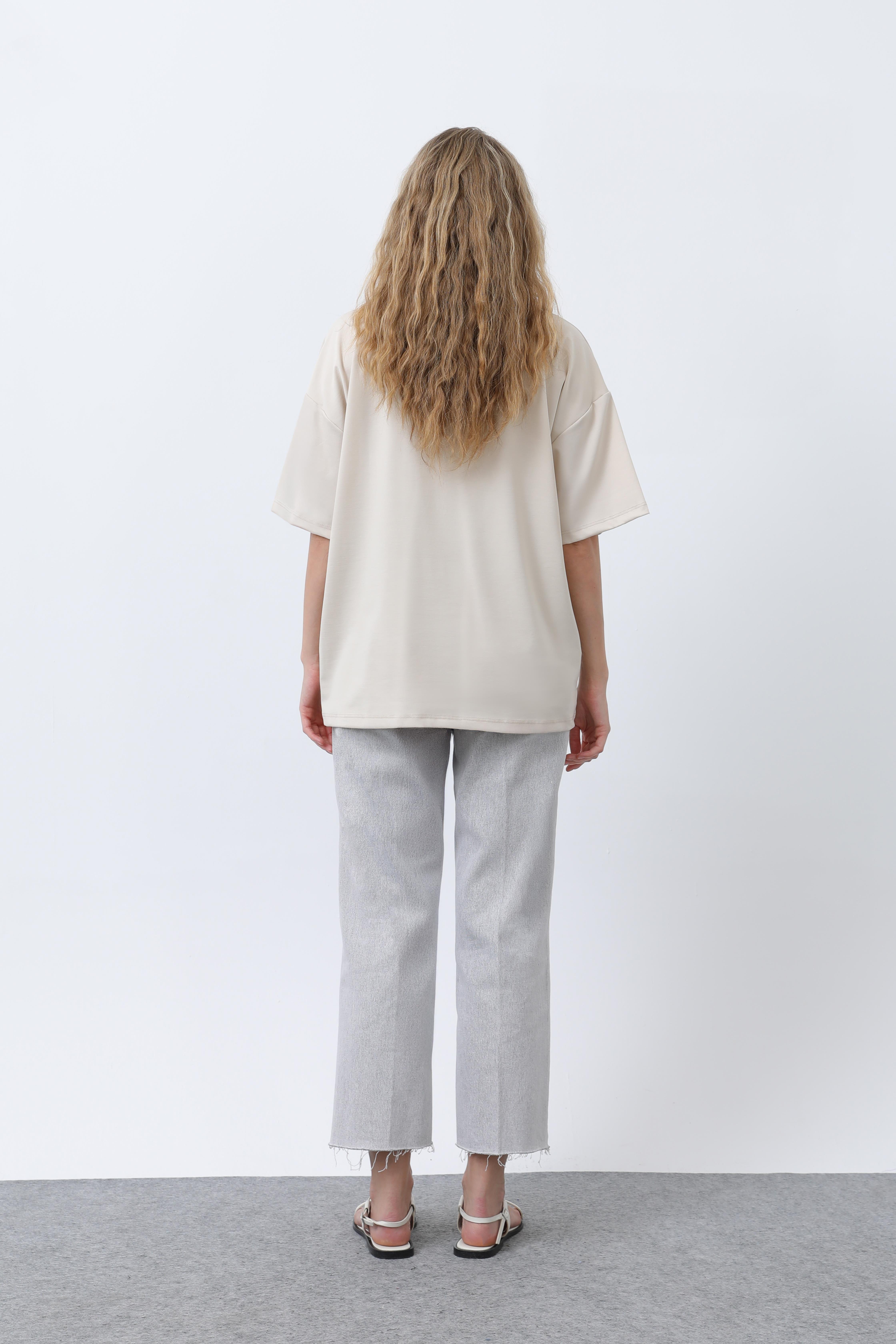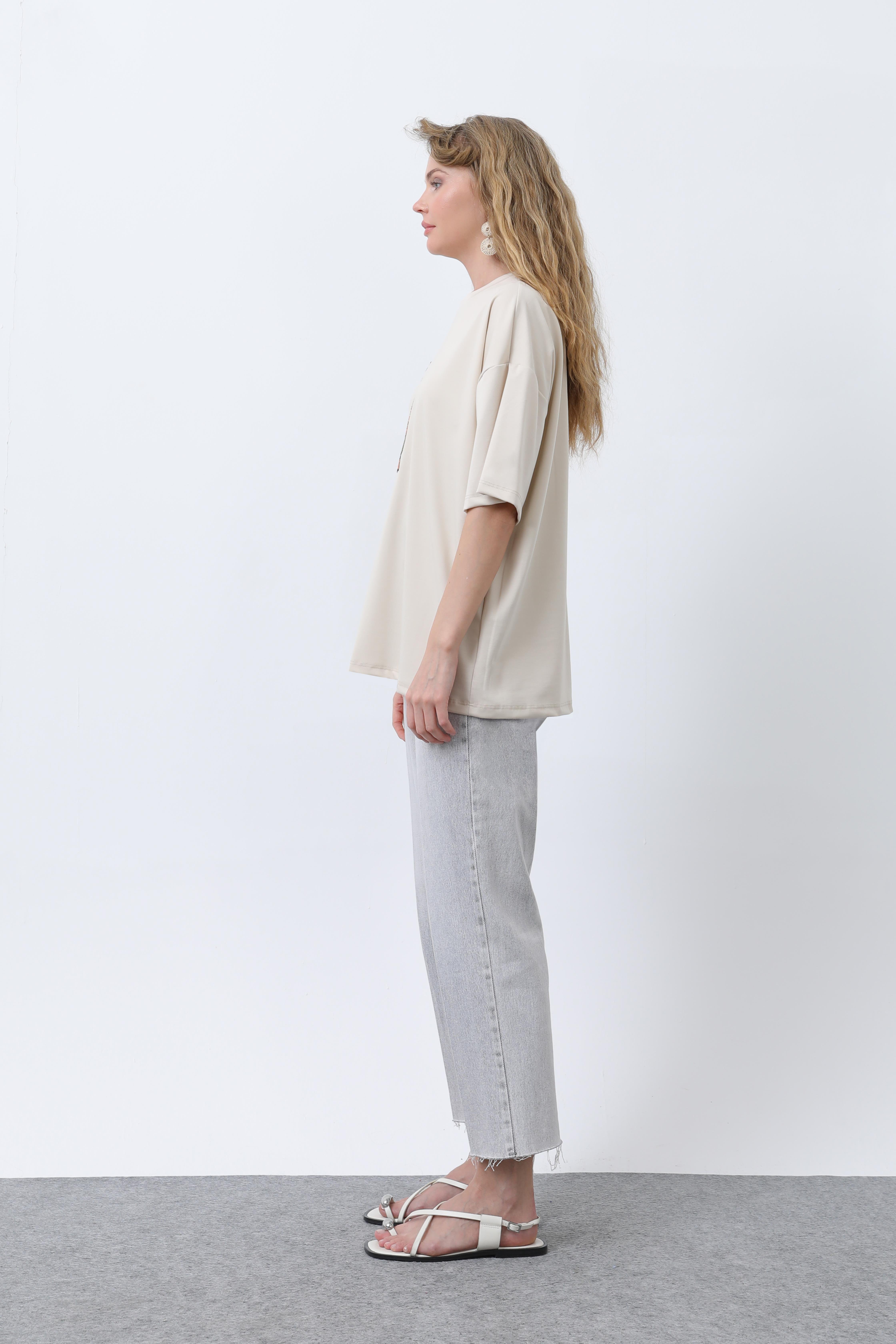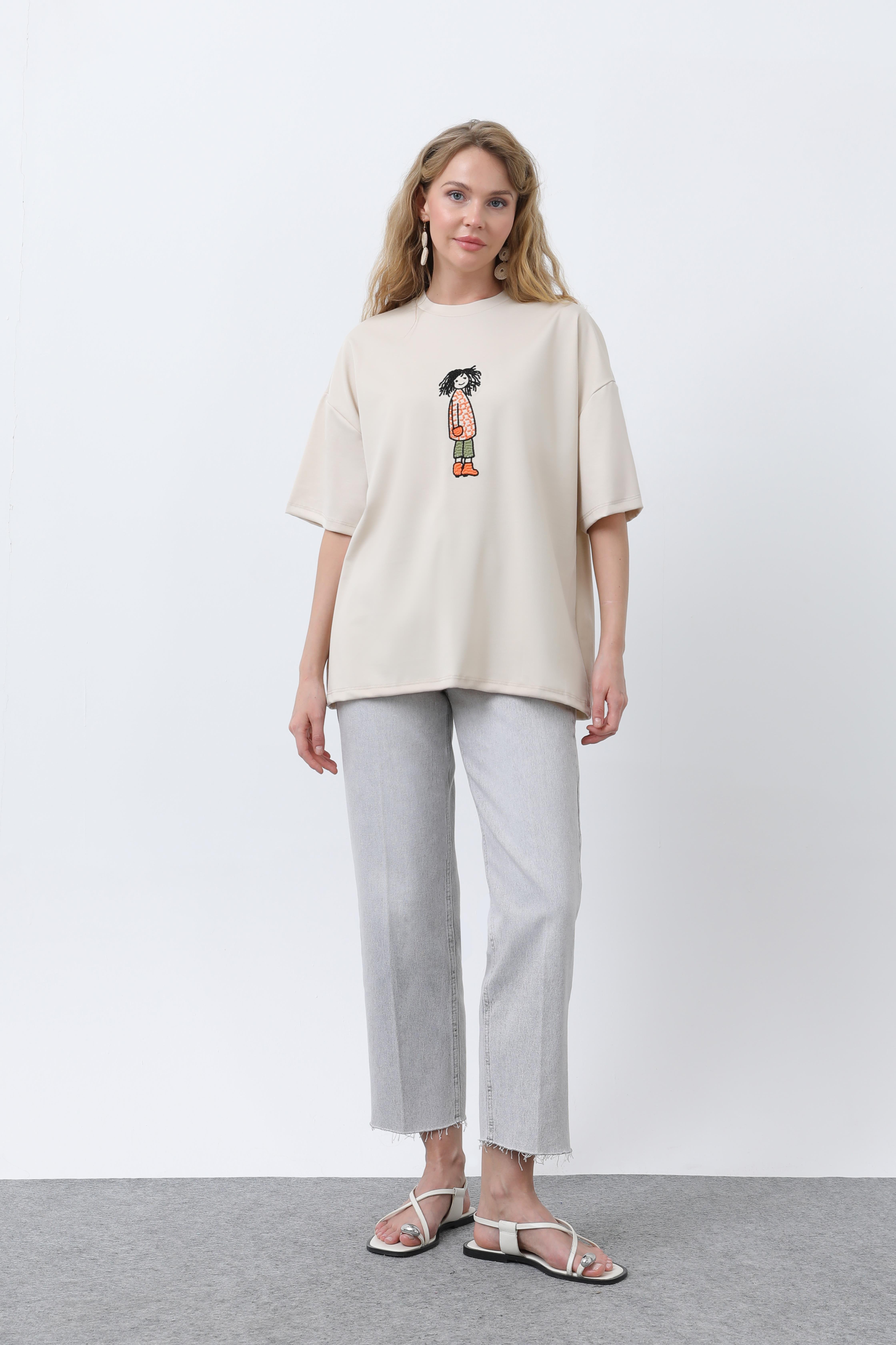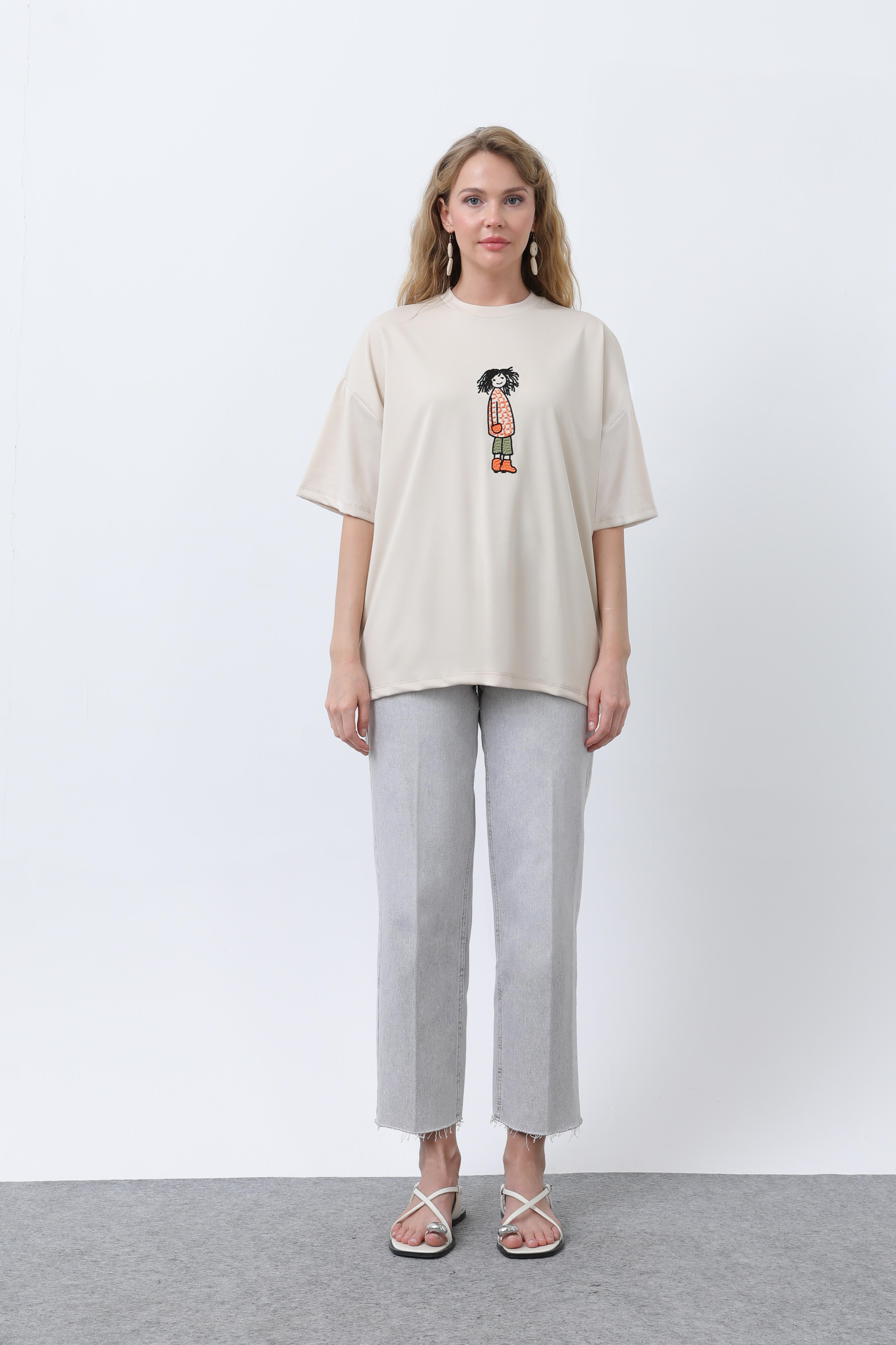 PUANE Figür Detaylı T-shirt 32355 - Bej Figür Detaylı T-shirt 32355 - Bilen Giyim T-shirt