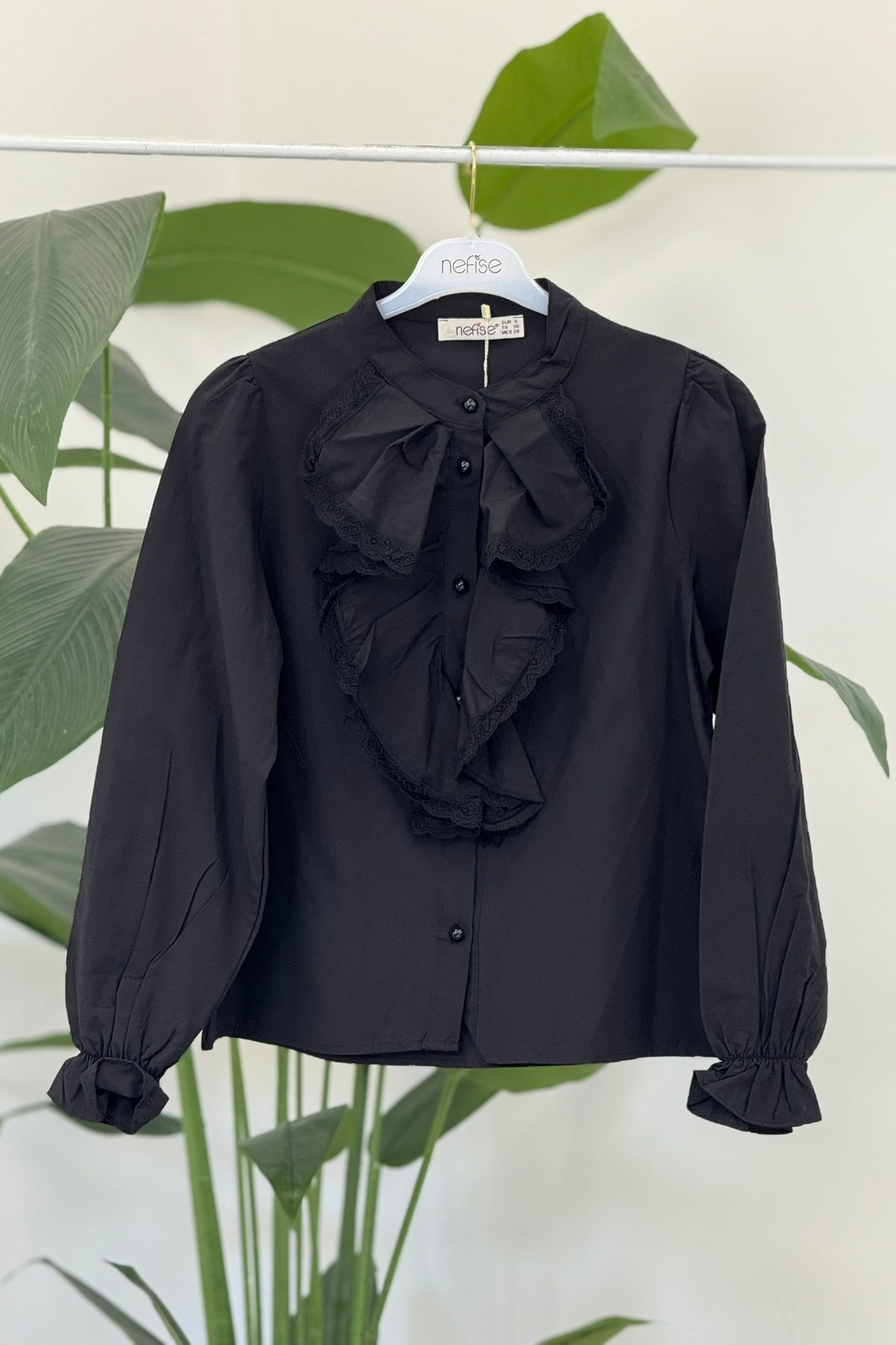 Fırfır Yaka Dantel Detaylı Bluz 260133 - Siyah (473280101)
