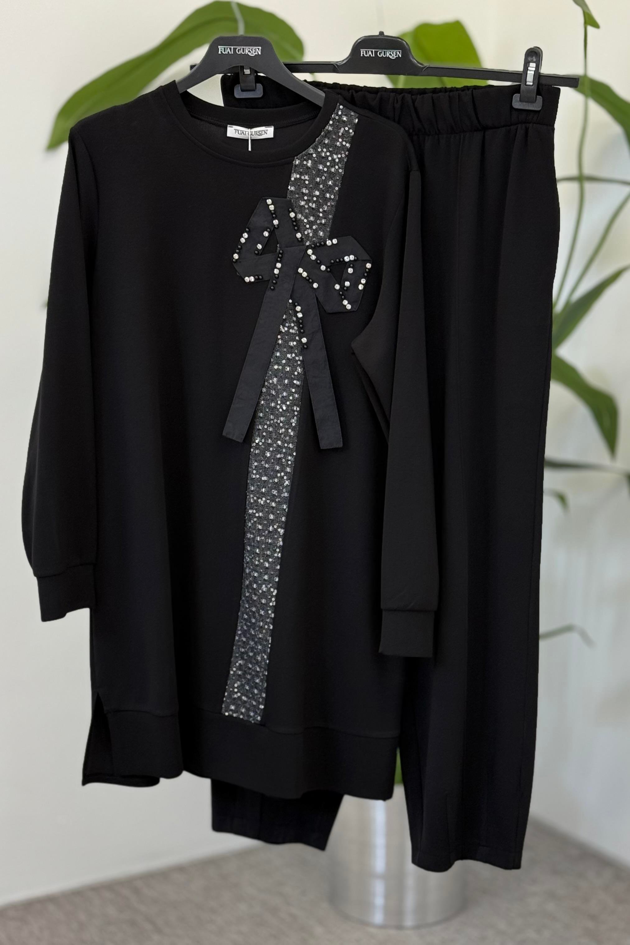 Fuat Gürşen 3360 Büyük B. Ön Fiyonk Detaylı Pantolonlu Takım - Siyah