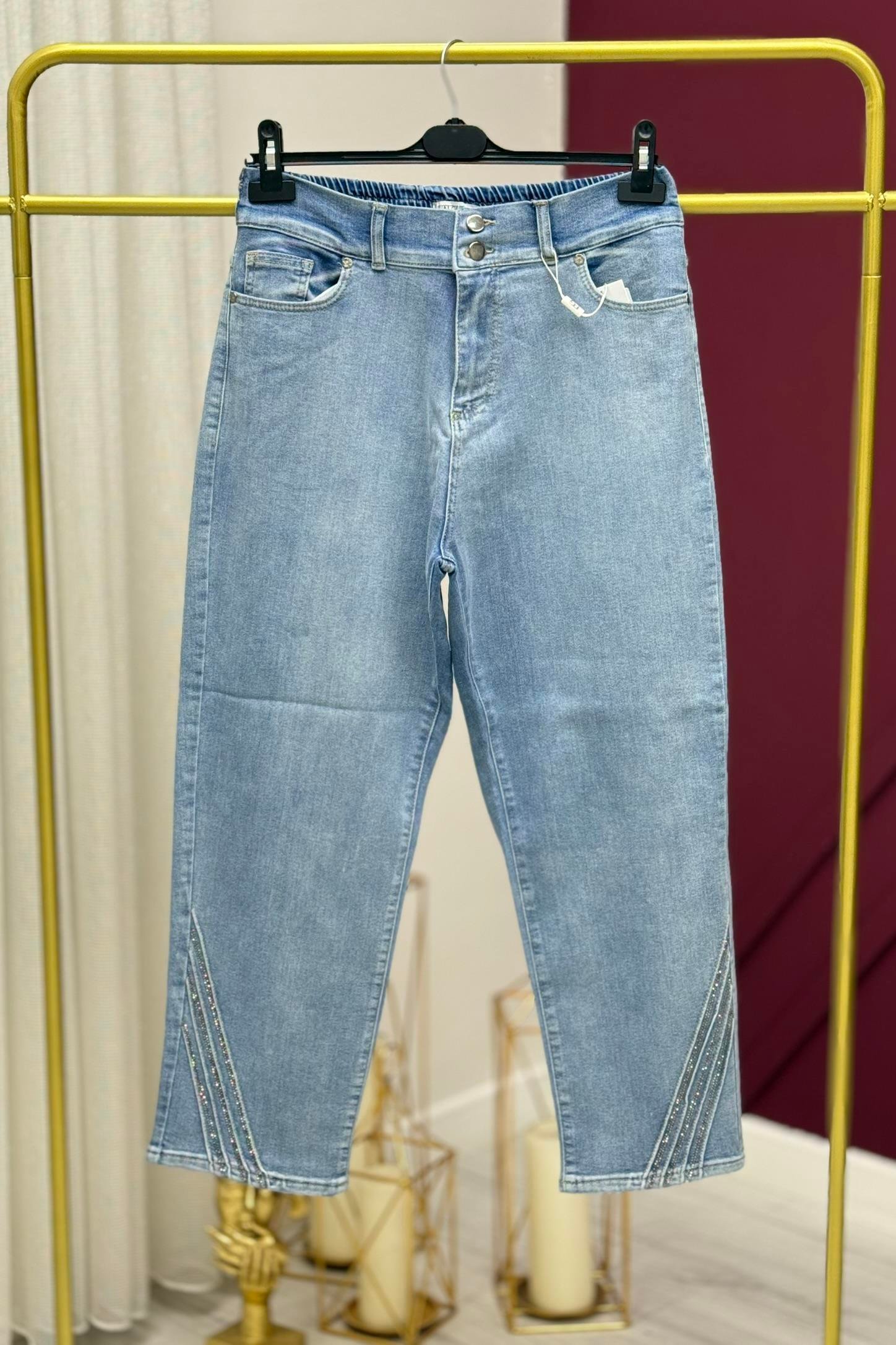 Fuat Gürşen 3403 Paça Çapraz Taş İşlemeli Kot Pantolon - İndigo