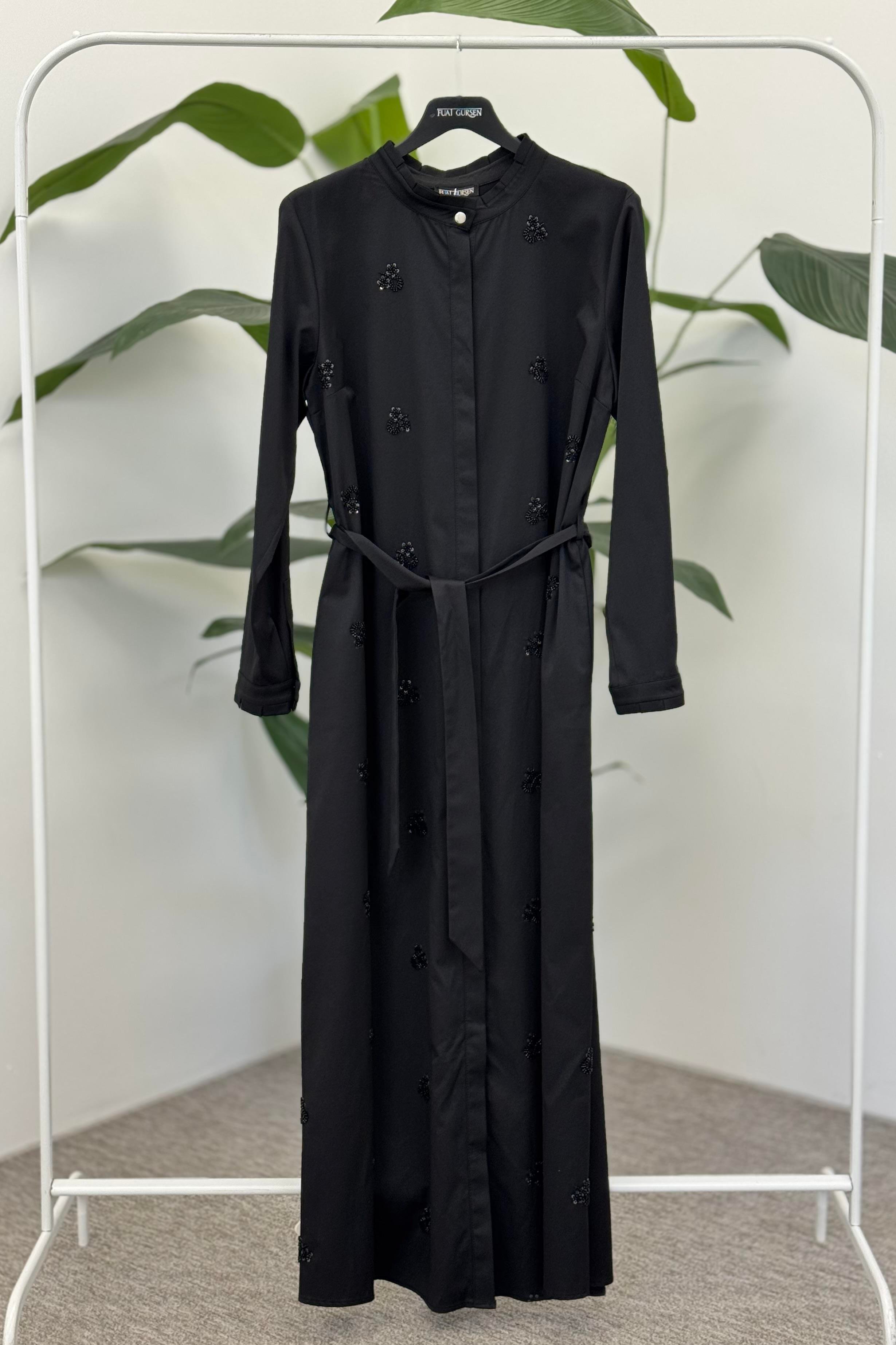 Fuat Gürşen 4103 Boncuk İşlemeli Şık Elbise - Siyah (363310904)