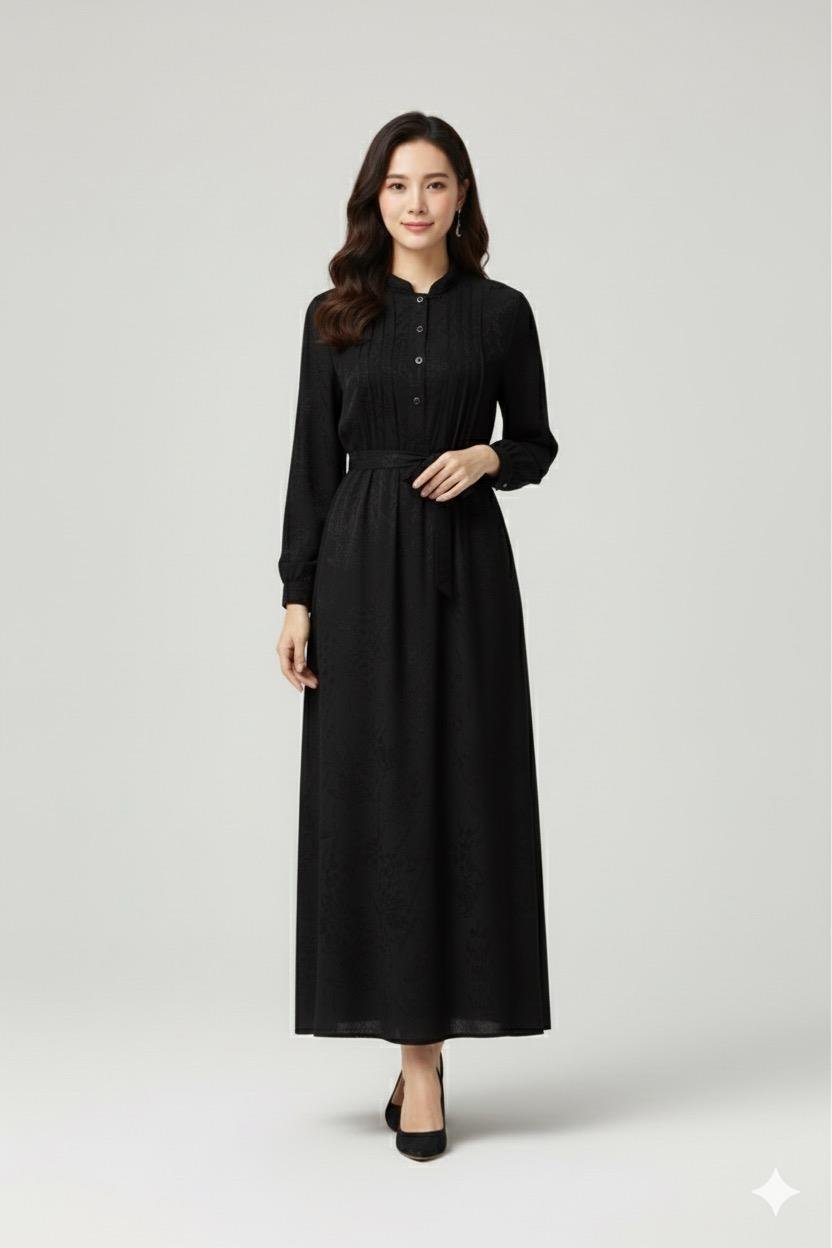 Fuat Gürşen 4105 Büyük B Yarım Düğme Detay Elbise - Siyah (363310907)