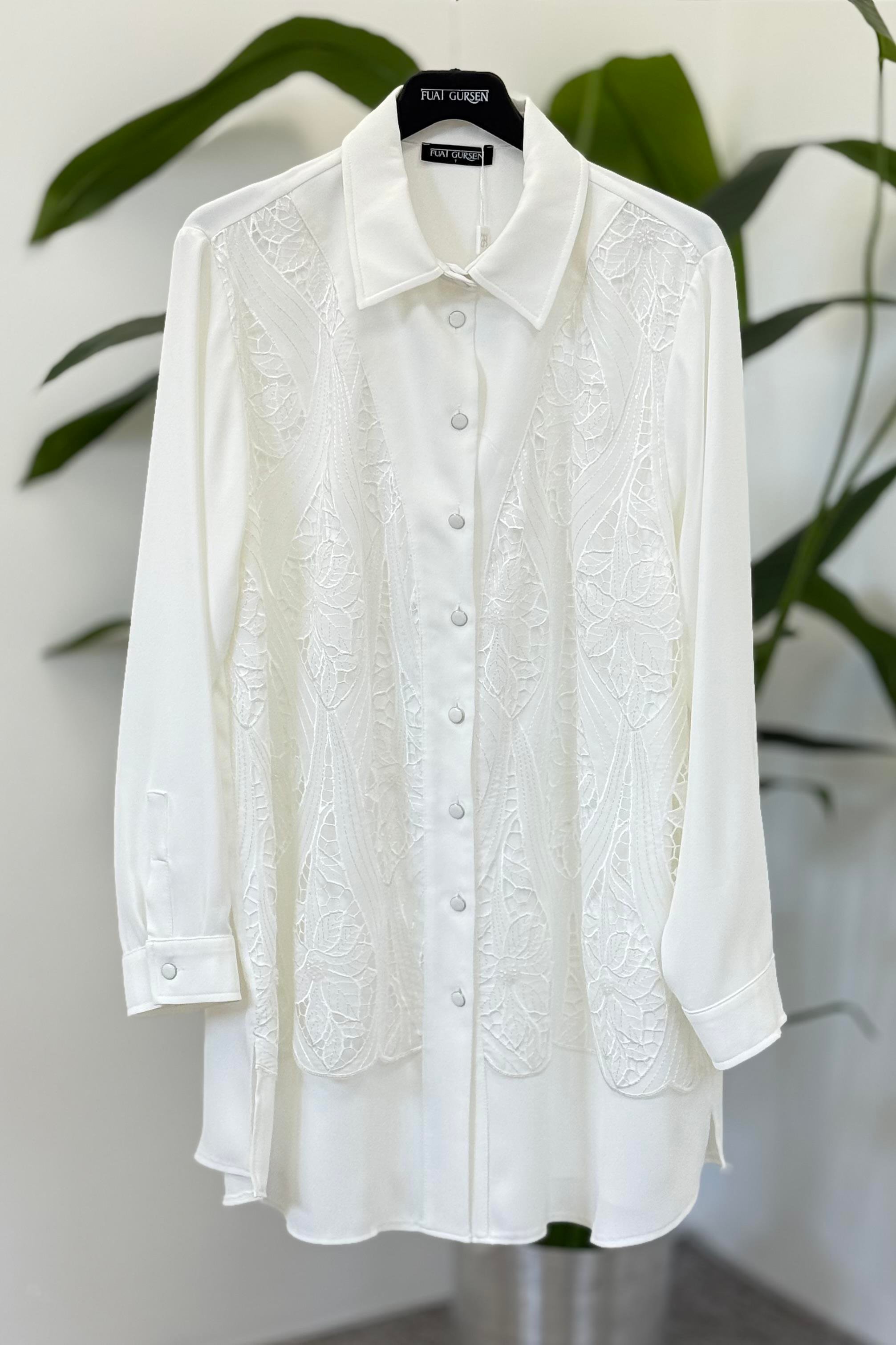 Fuat Gürşen 4300 Büyük B. Ön Dantel Detay Tunik - Ekru