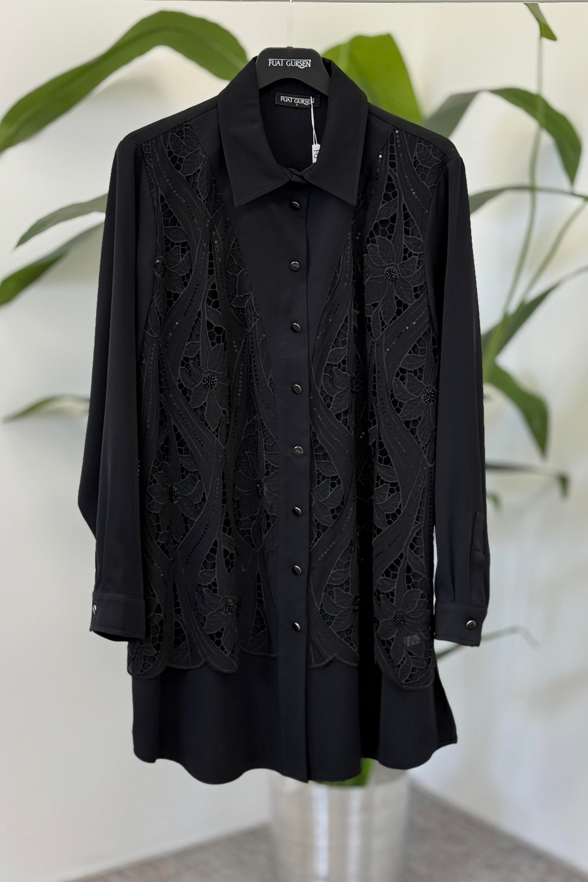 Fuat Gürşen 4300 Büyük B. Ön Dantel Detay Tunik - Siyah
