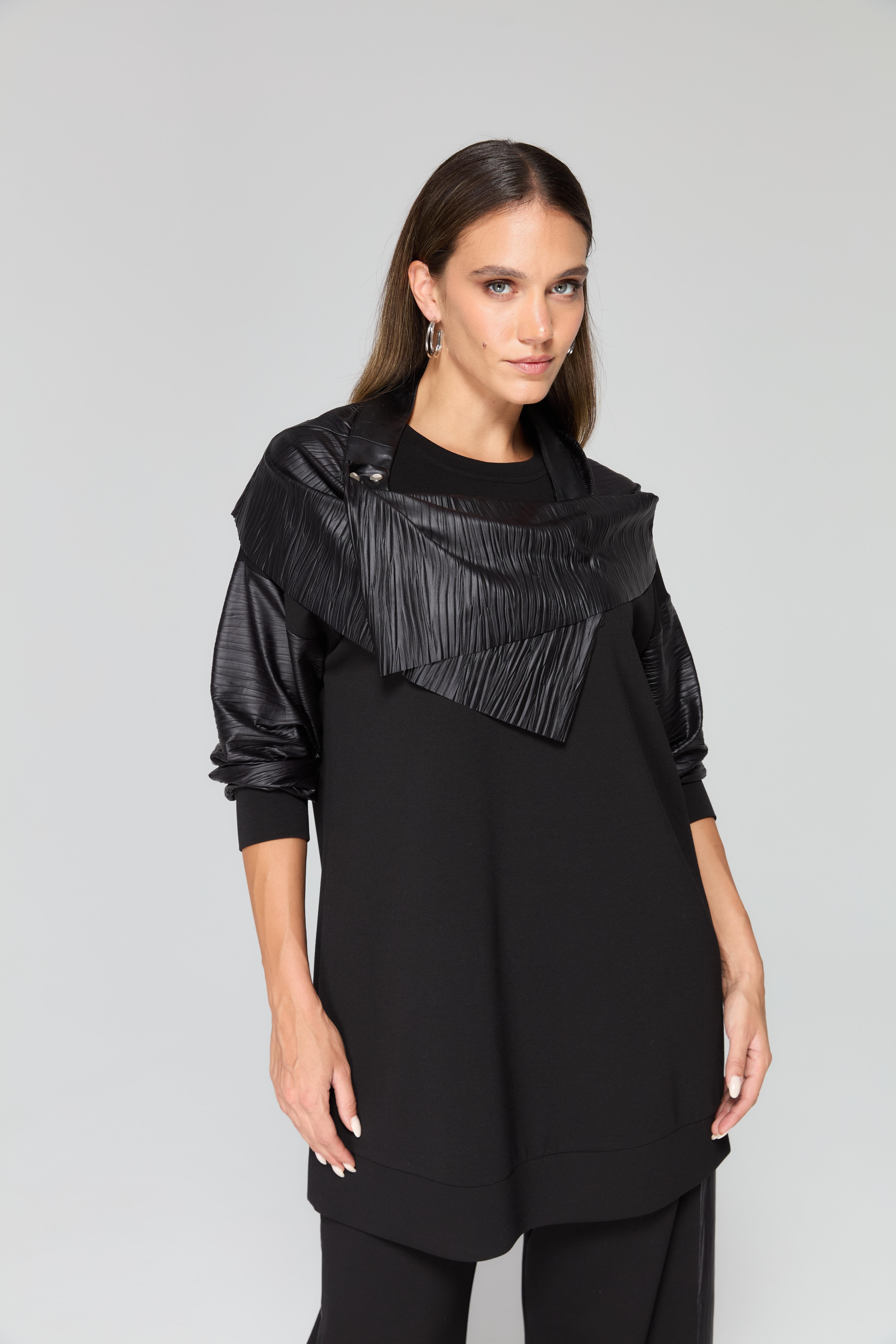 Fuat Gürşen 4304 Büyük B. Deri Garnili Yaka Detaylı Tunik - Siyah (362310904)