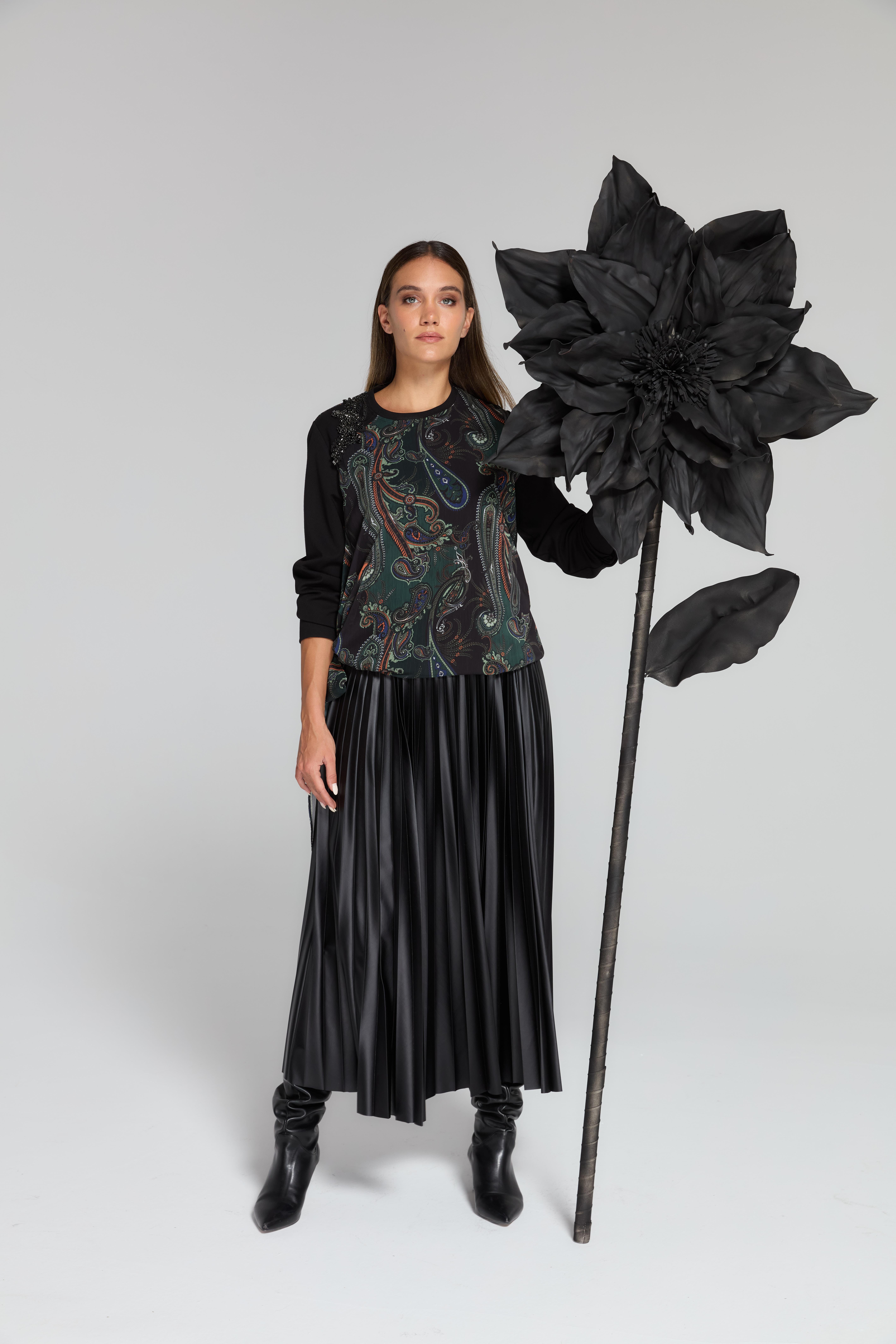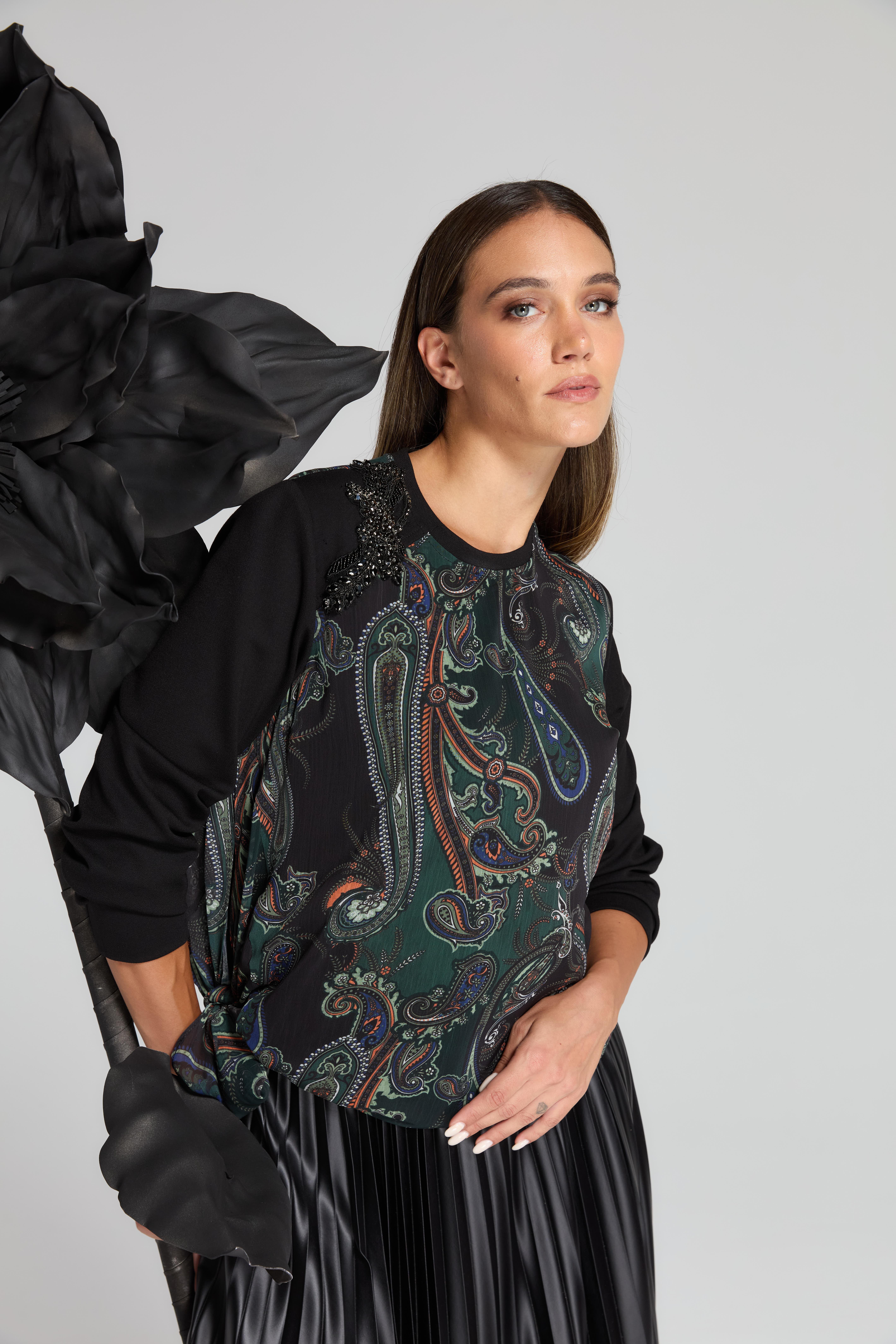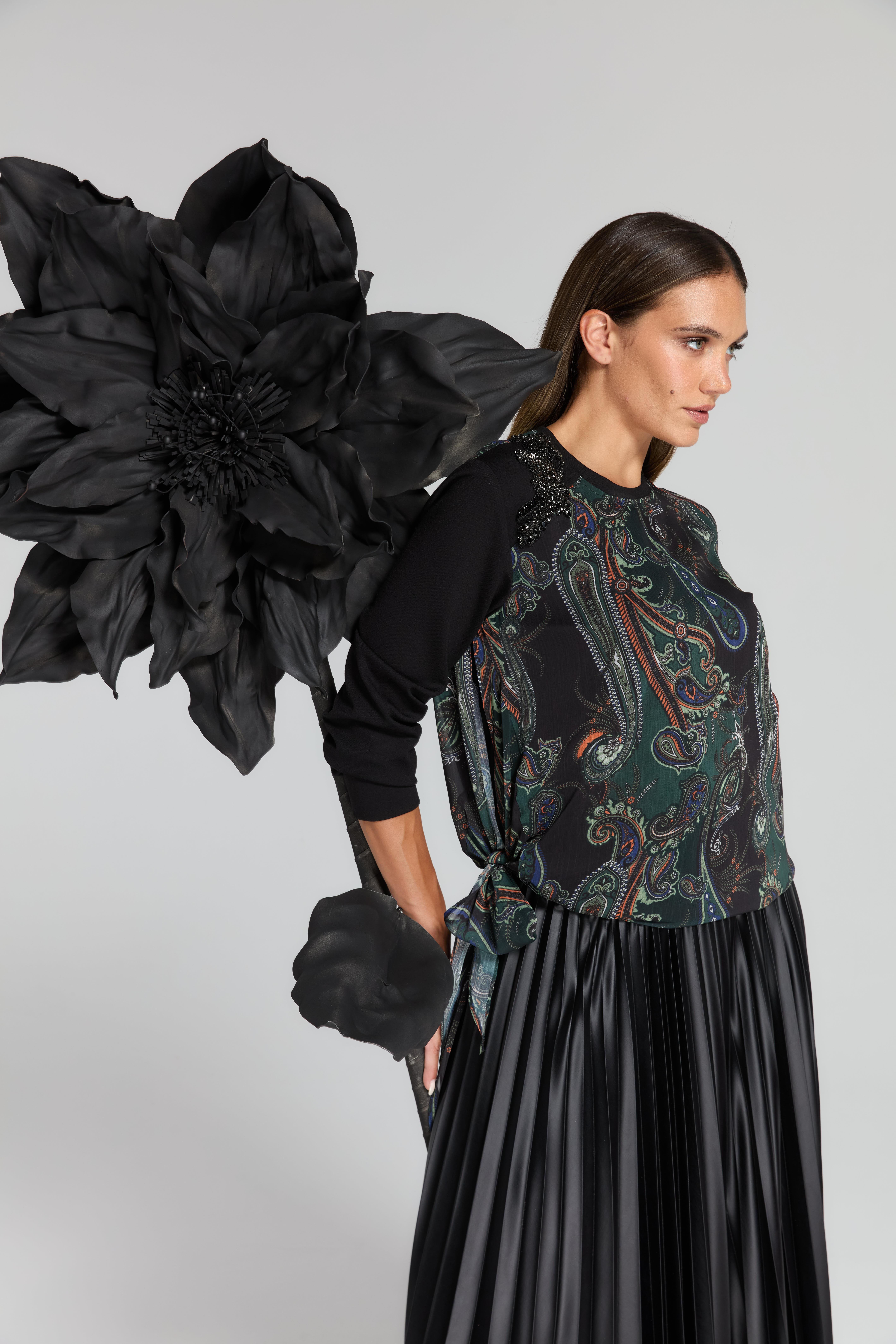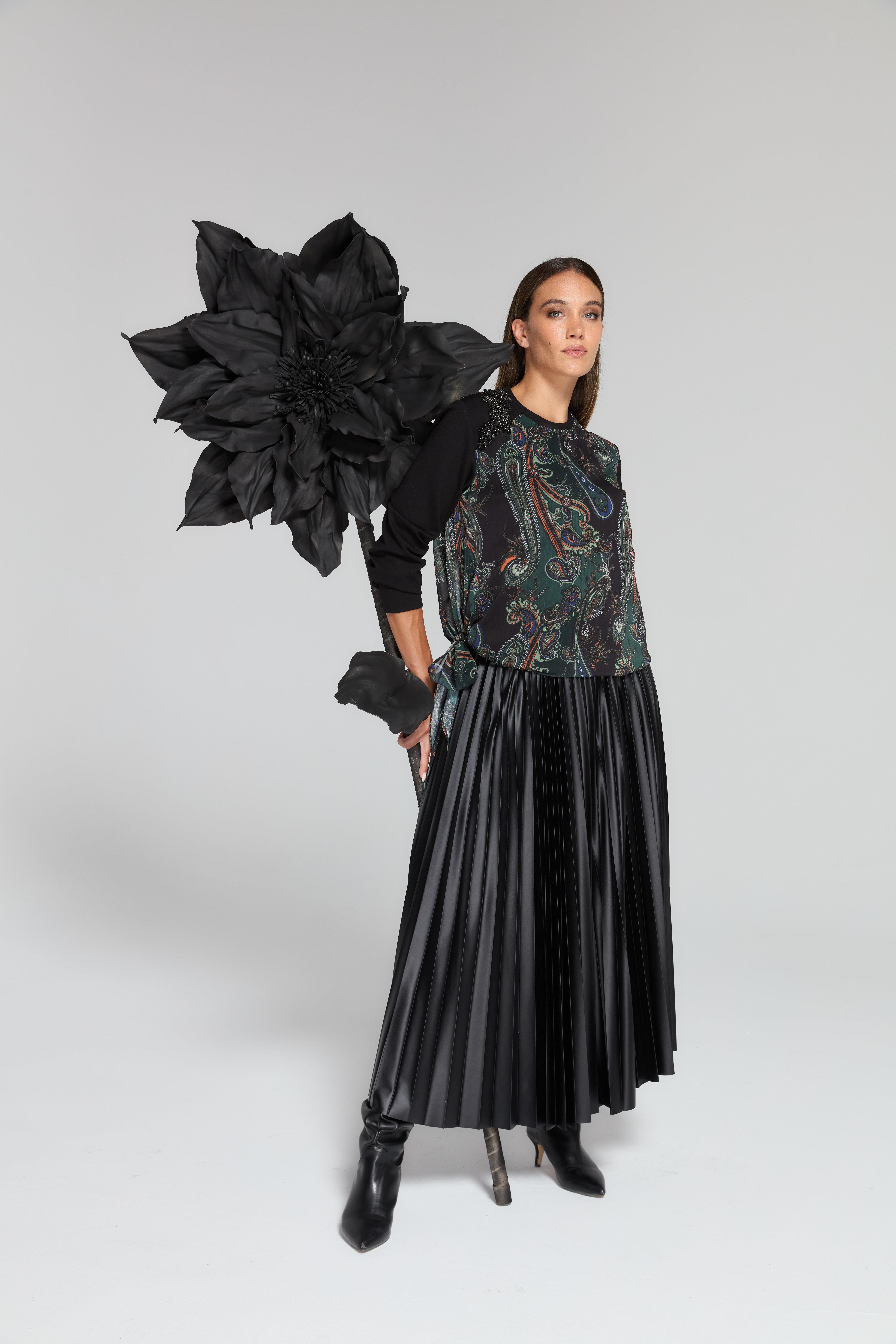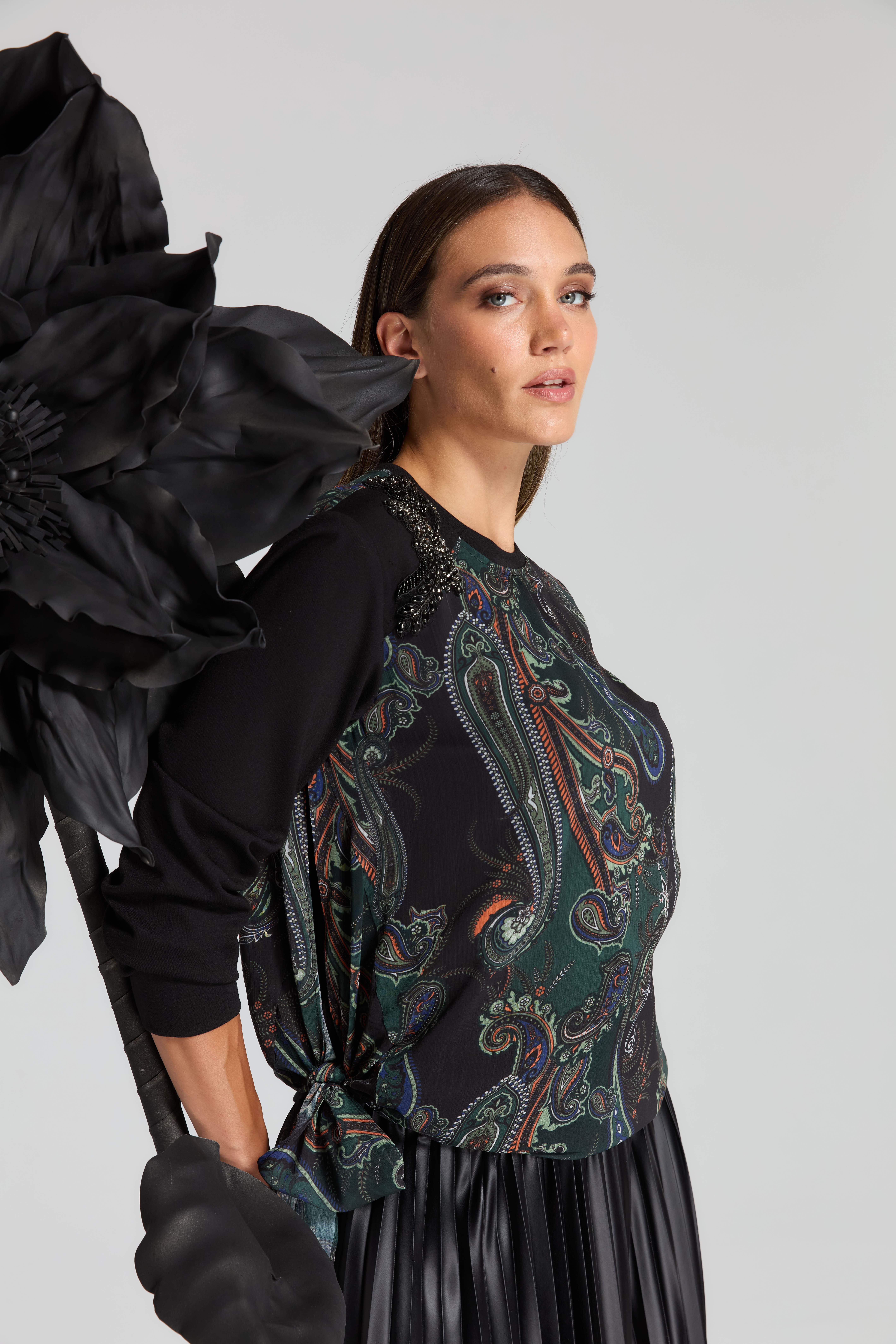Fuat Gürşen 4307 Yan Başlama Detay Yaka Boncuklu Bluz - Siyah (373310901)