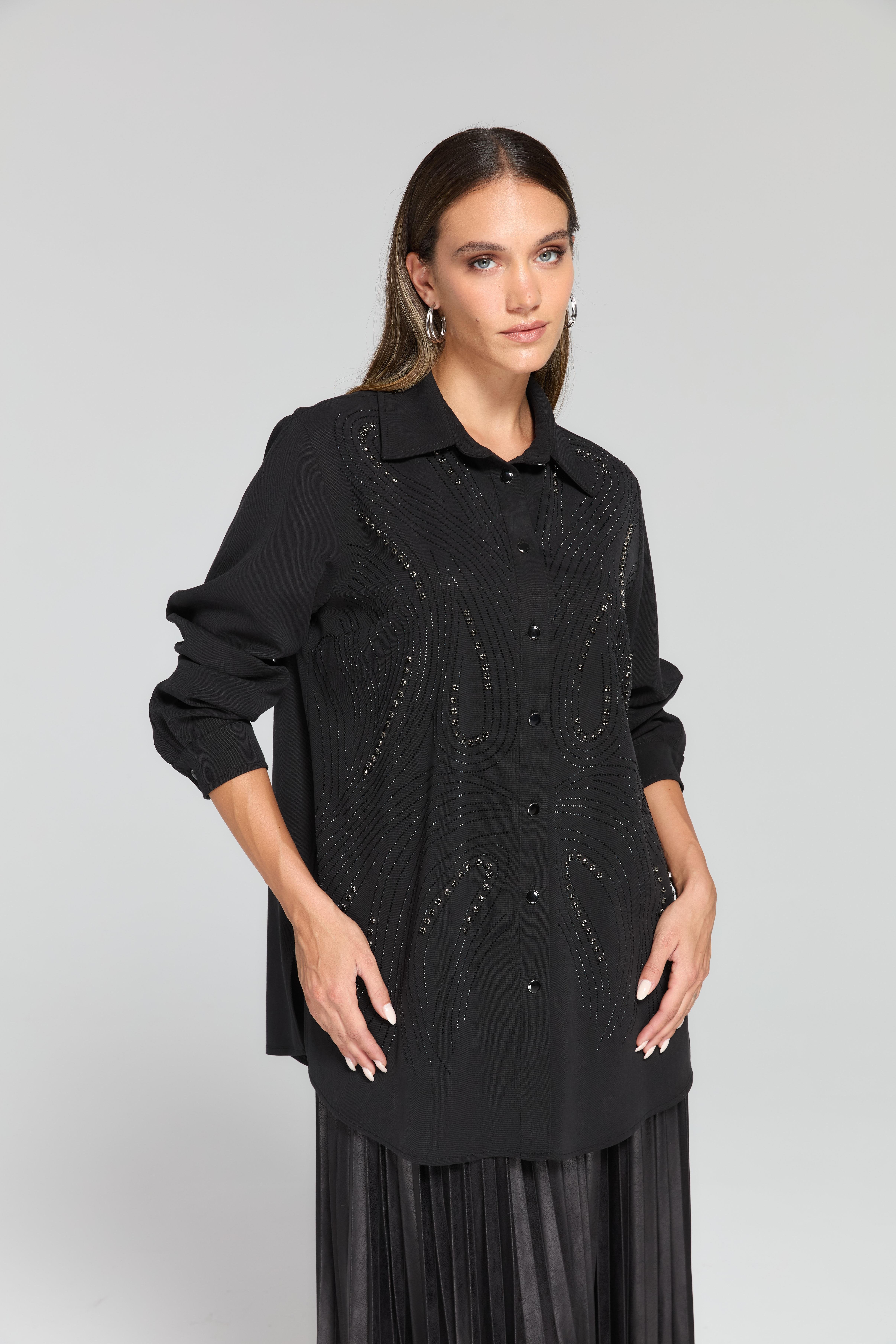 Fuat Gürşen 4308 Büyük B.Taş Baskılı Tunik - Siyah