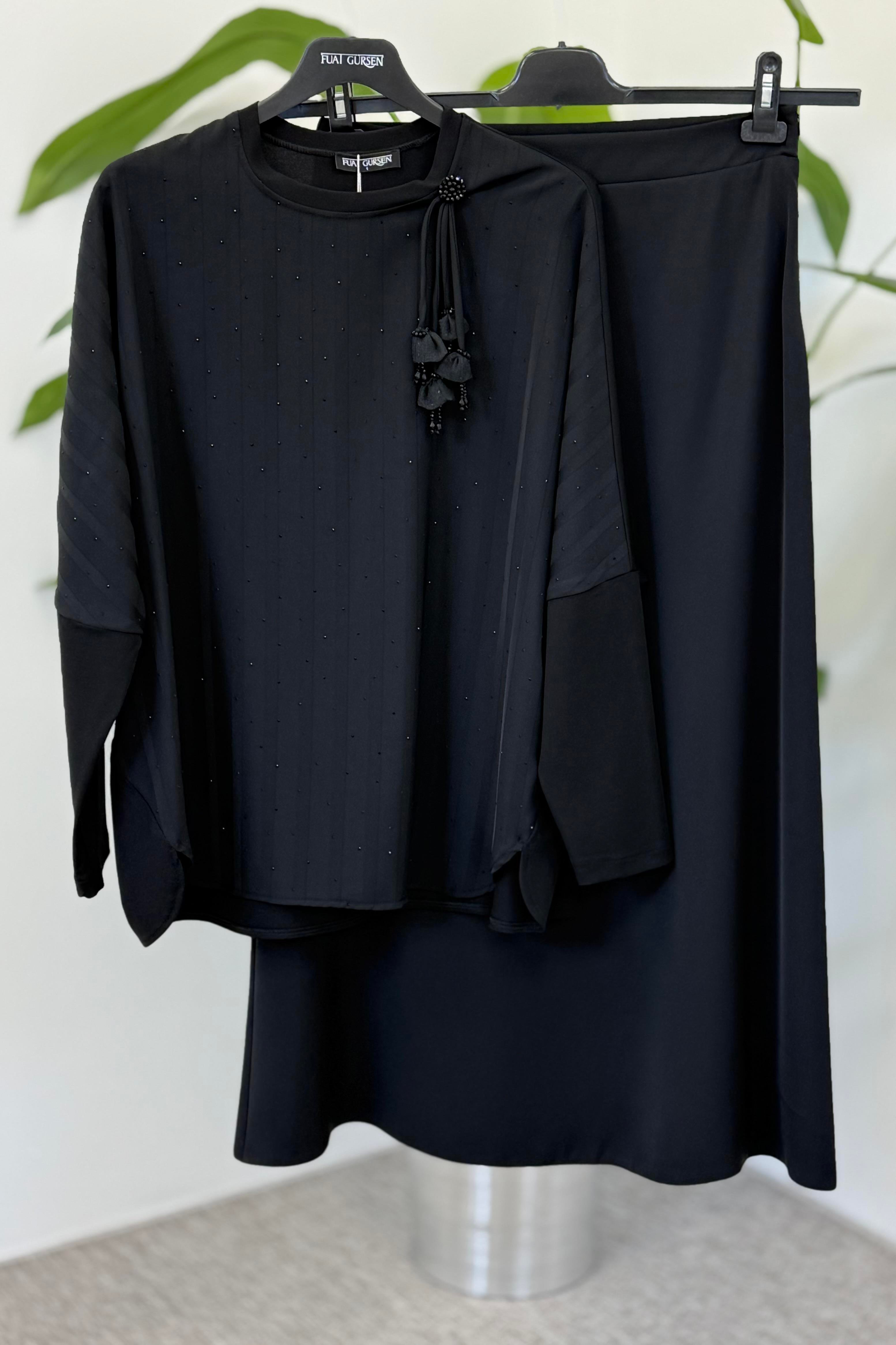 Fuat Gürşen 4309 Ön Şerit Detay Etekli Takım - Siyah (350310903)