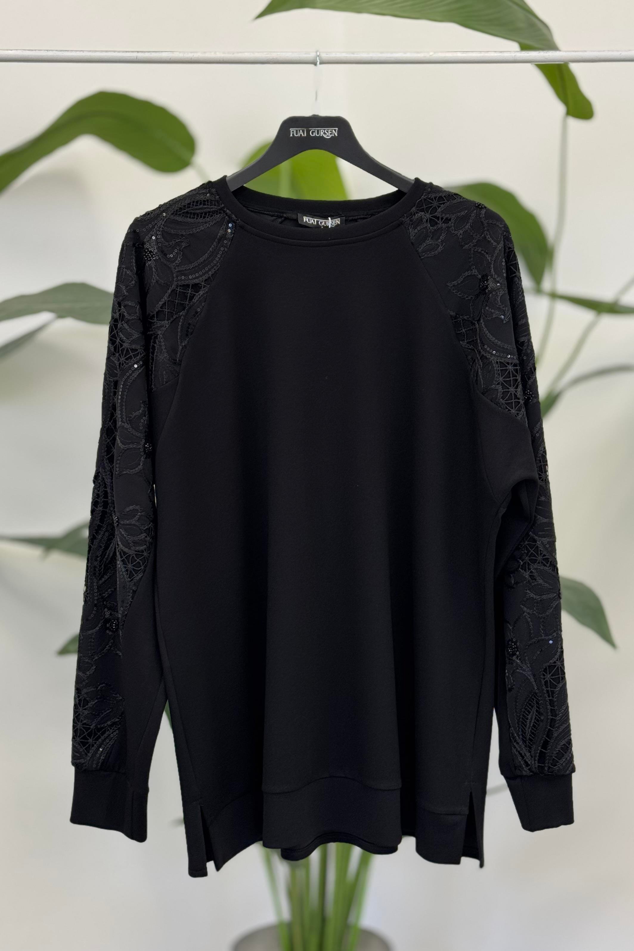 Fuat Gürşen 4318 Büyük B. Omuzları İşlemeli Tunik - Siyah (362310905)