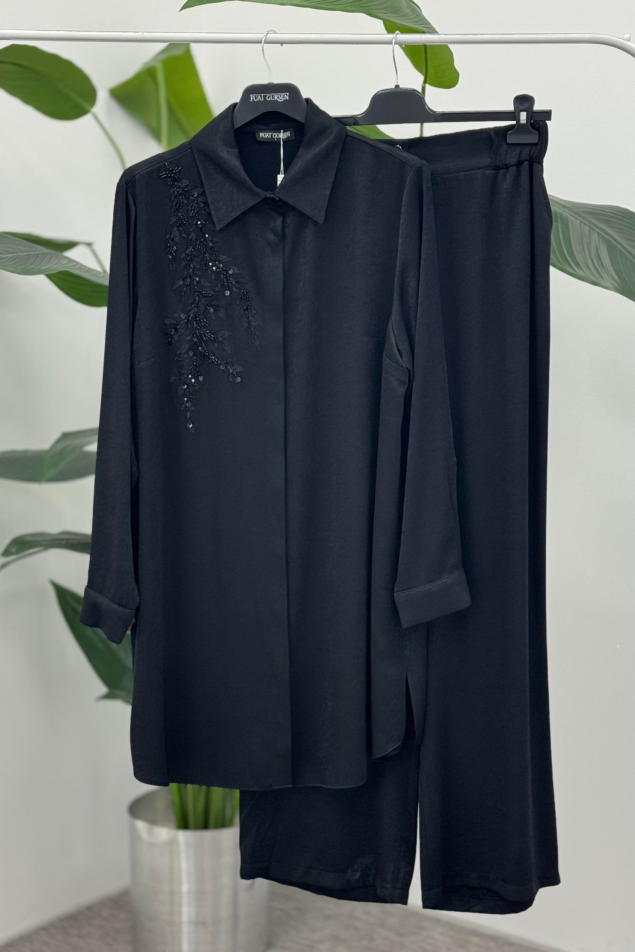 Fuat Gürşen 4321 Büyük B. Boncuk İşlemeli Pantolonlu Takım - Siyah