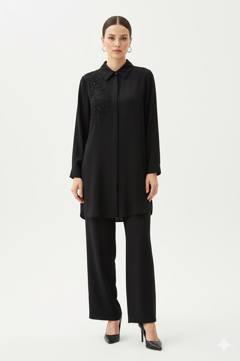 Fuat Gürşen 4321 Büyük B. Boncuk İşlemeli Pantolonlu Takım - Siyah (350310915)
