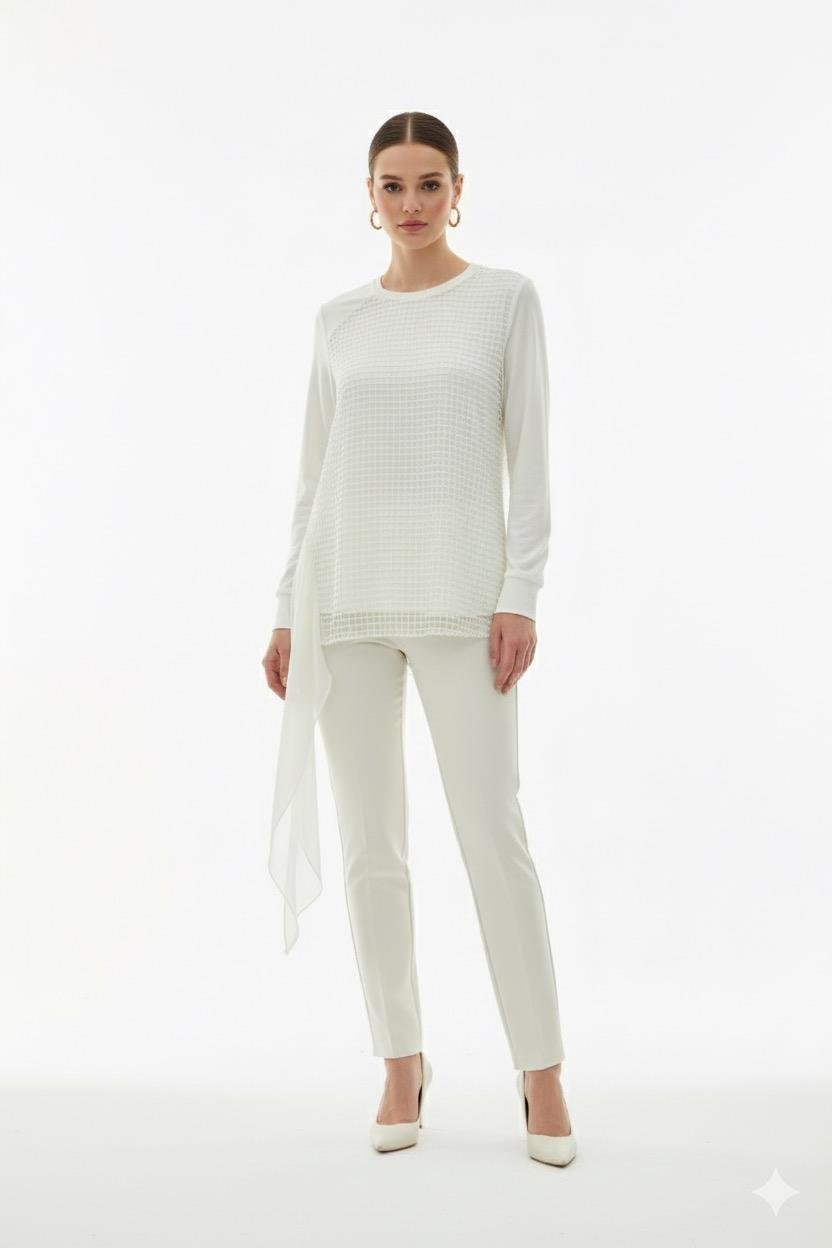 Fuat Gürşen 4325 Filesi Payet Detay Tunik - Ekru