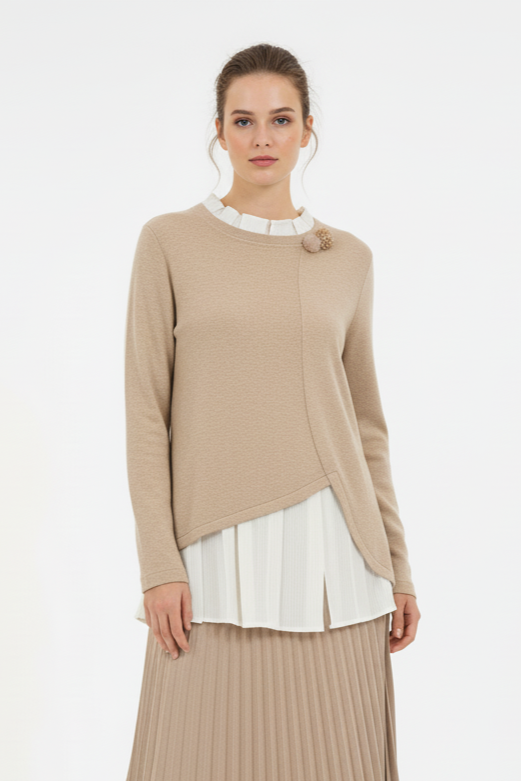 Fuat Gürşen 4329 Yaka Broş Detay Tunik - Bej