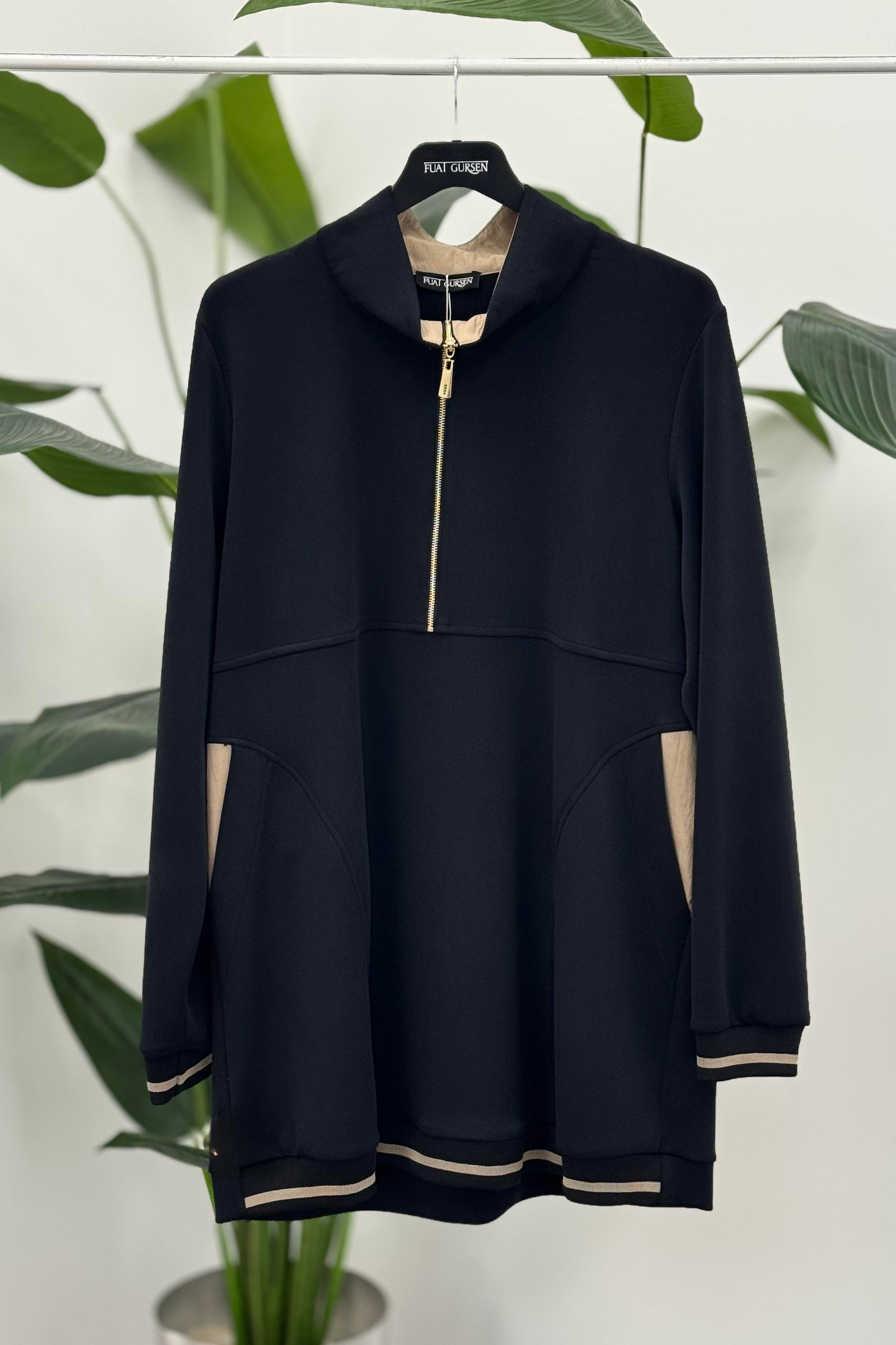 Fuat Gürşen 4331 Yarım Fermuar Detay Renk Geçişli Tunik - Siyah