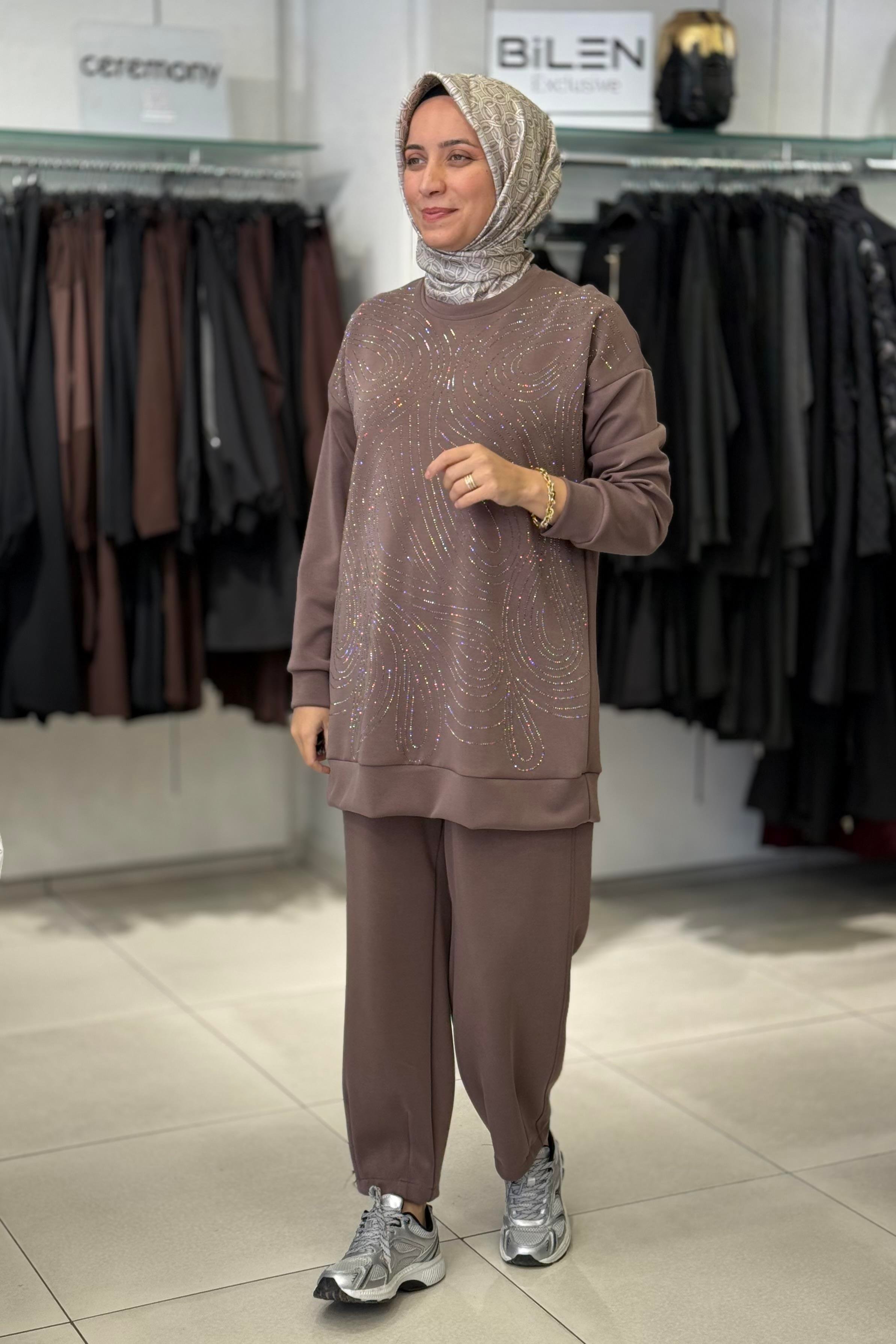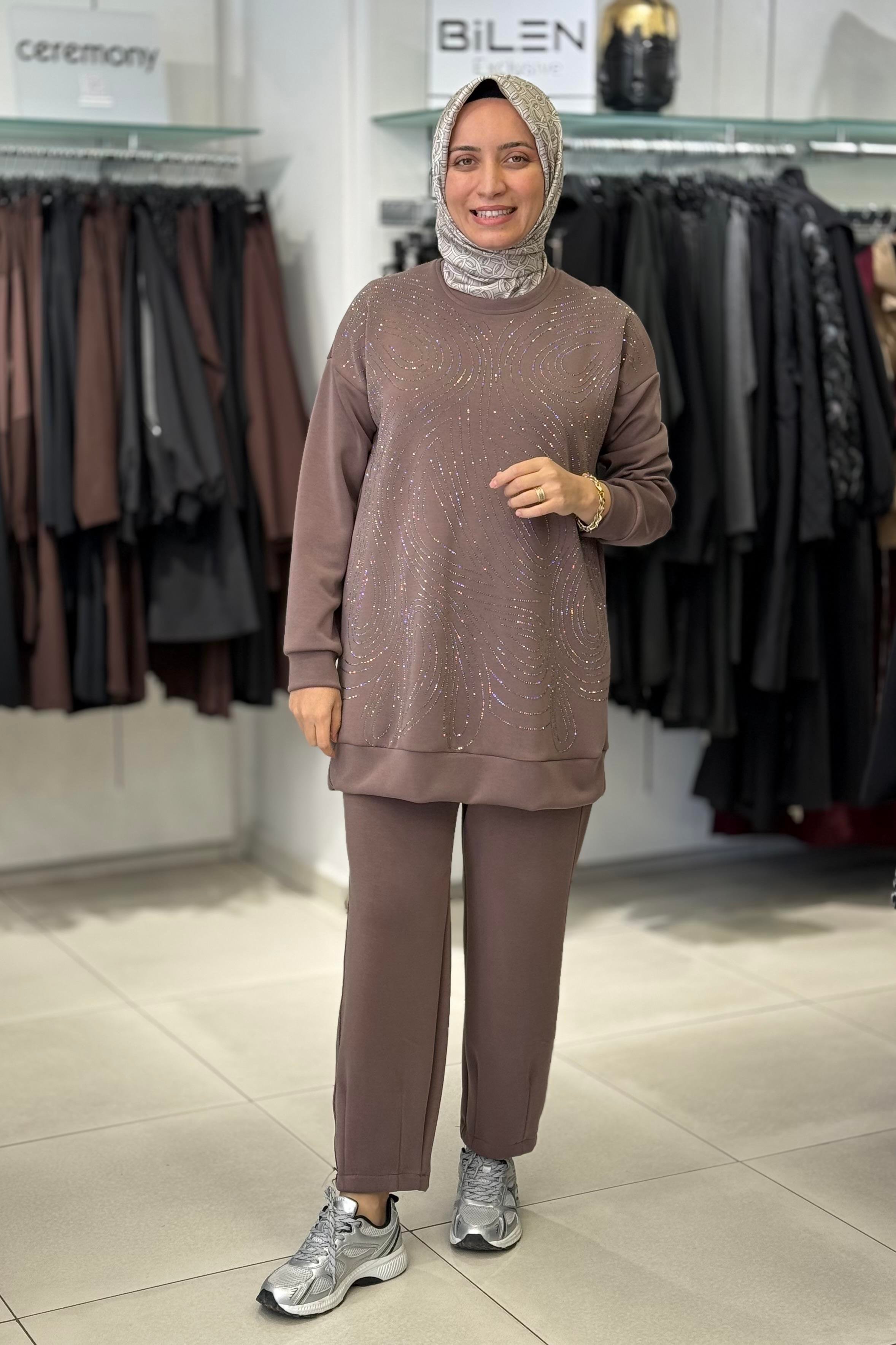 Fuat Gürşen 4337 Taş Baskılı Pantolonlu Takım - Kahve (350310914)