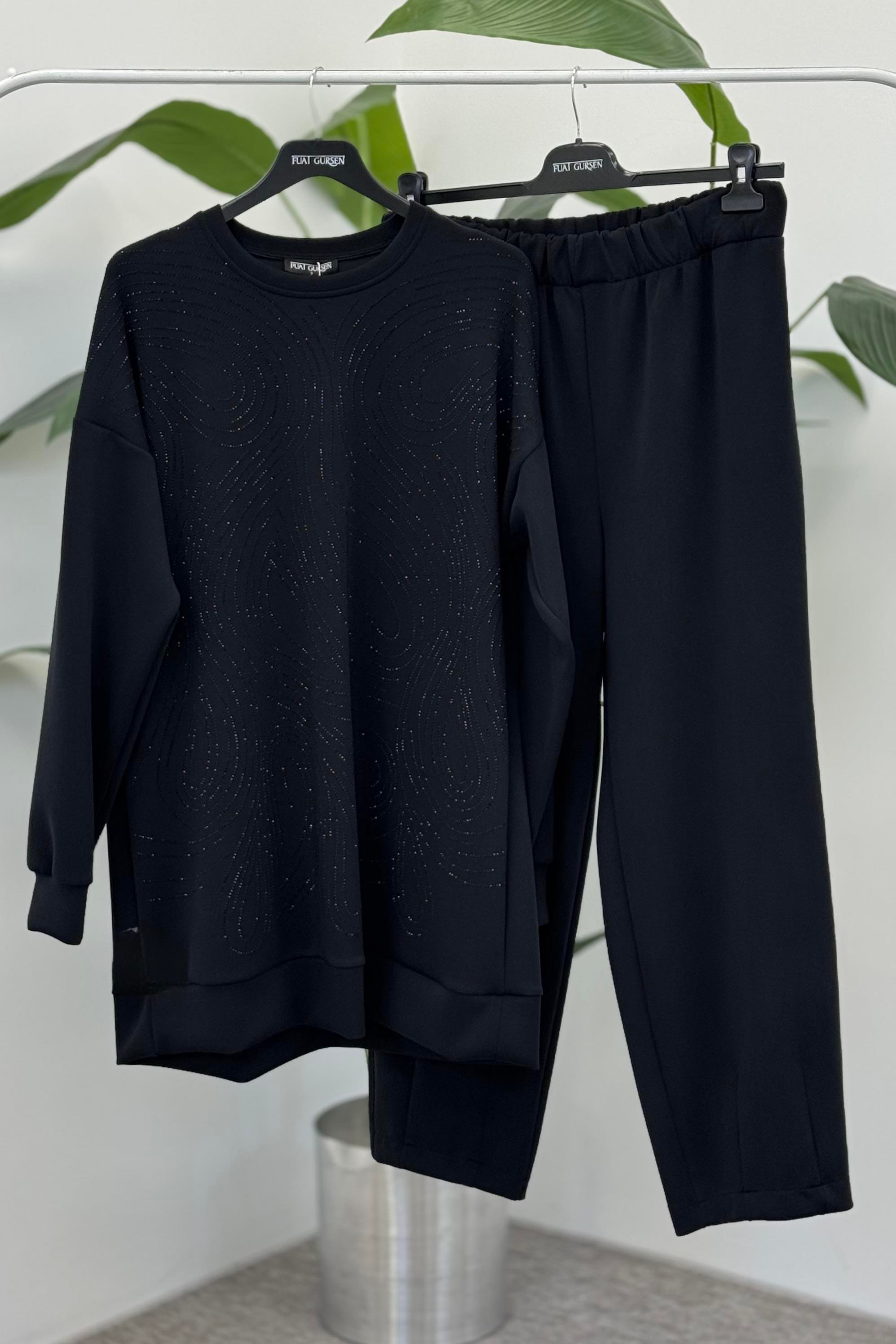 Fuat Gürşen 4337 Taş Baskılı Pantolonlu Takım - Siyah (350310914)