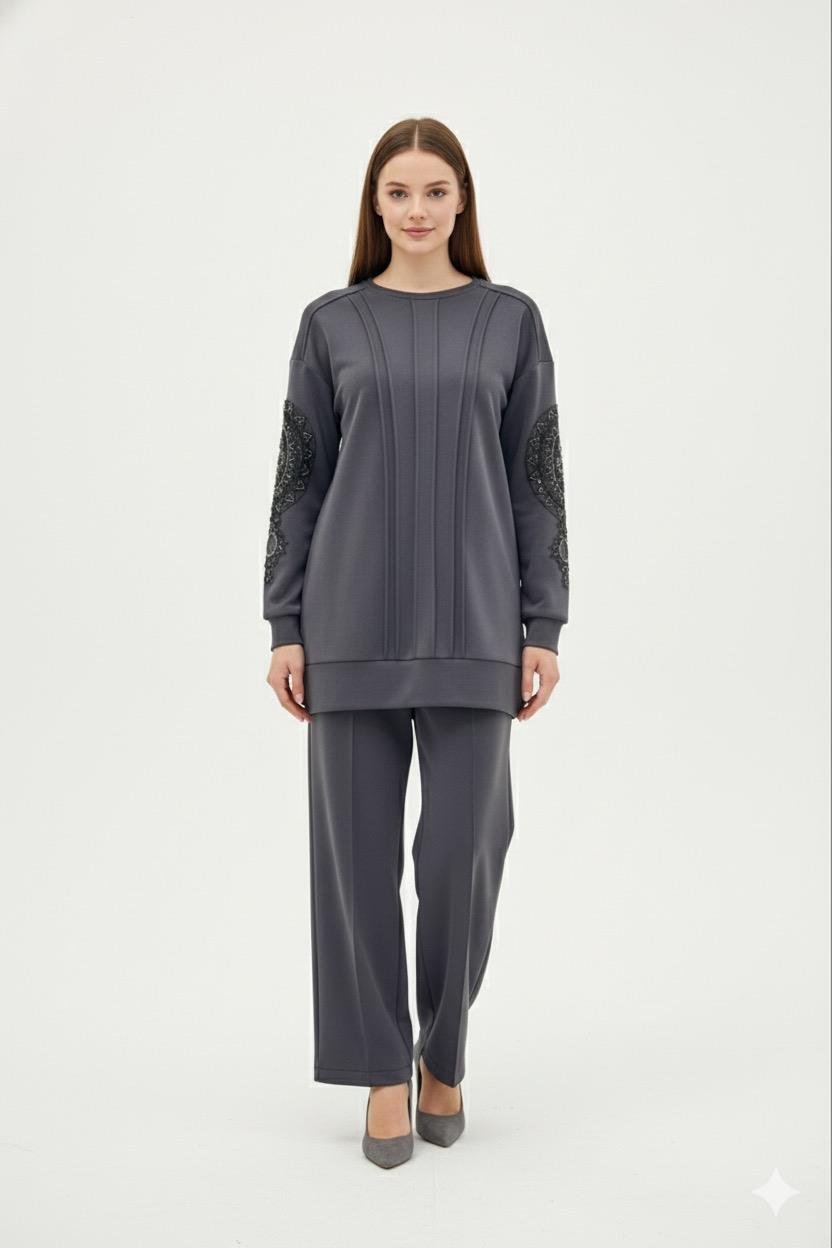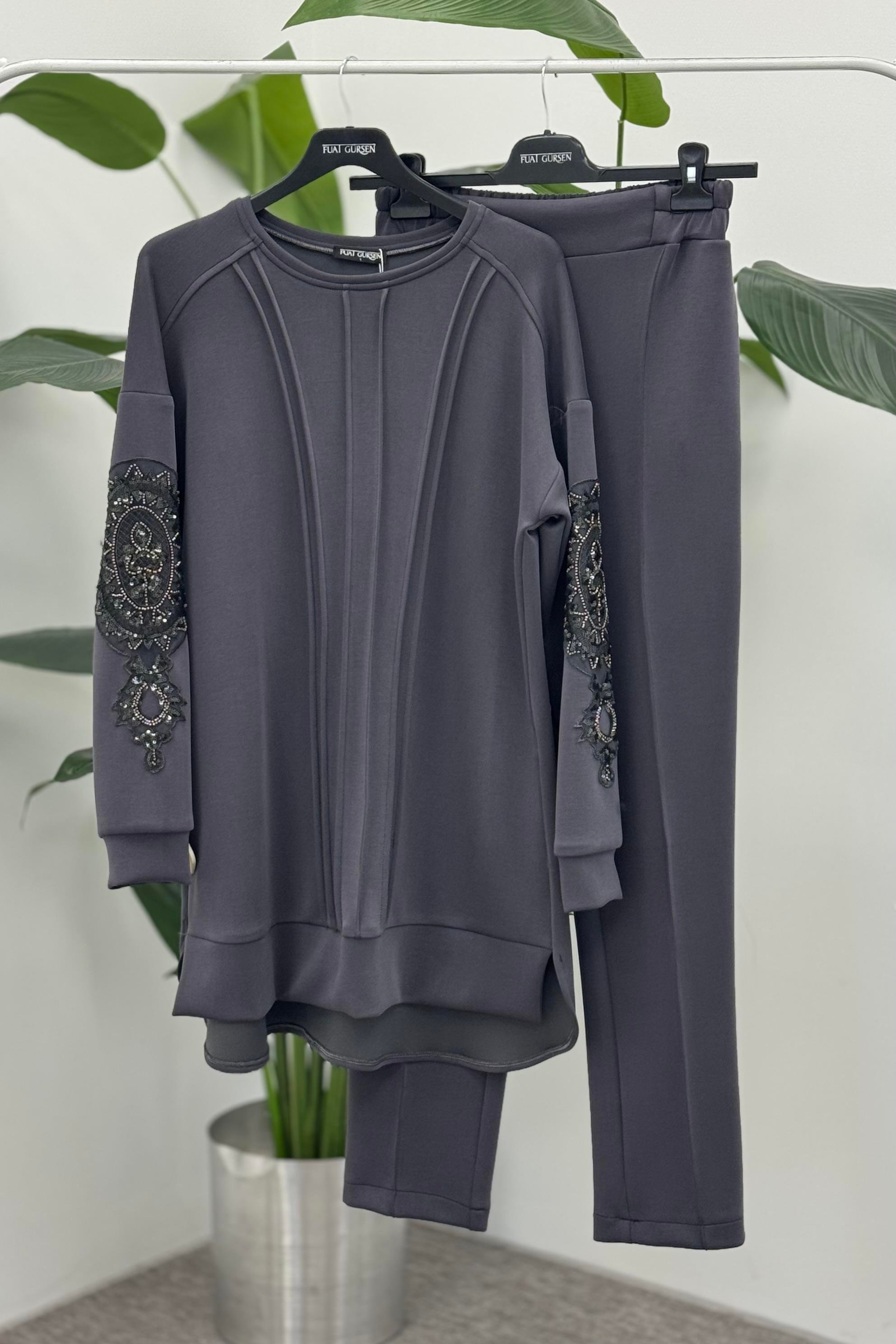 Fuat Gürşen 4339 Kolları İşlemeli Pantolonlu Takım - Antrasit
