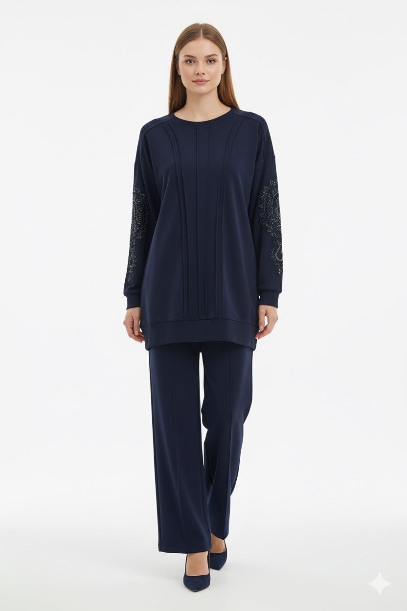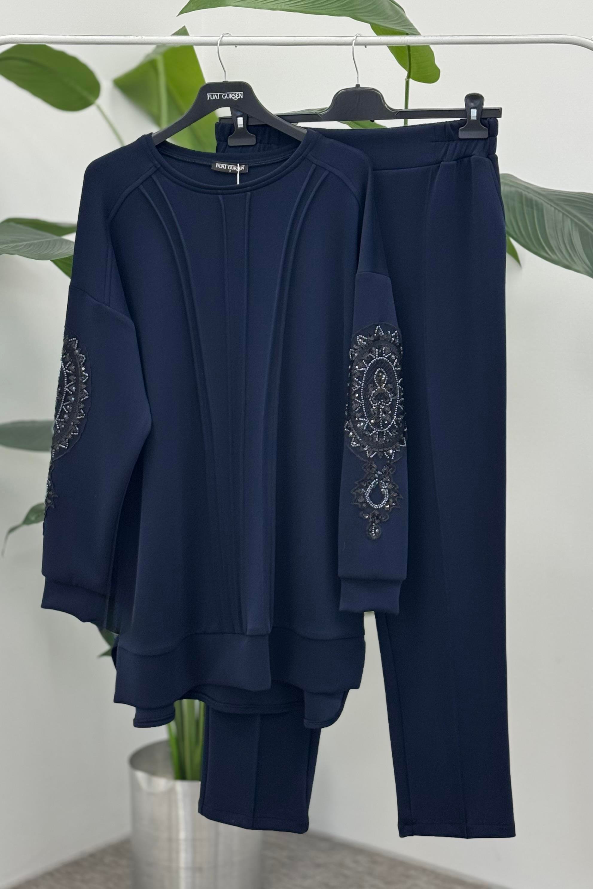 Fuat Gürşen 4339 Kolları İşlemeli Pantolonlu Takım - Lacivert (350310917)