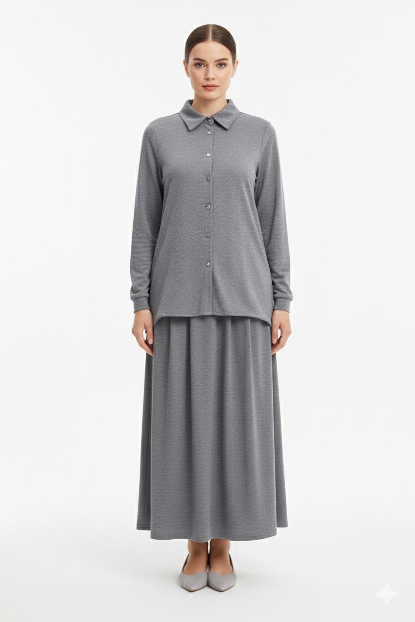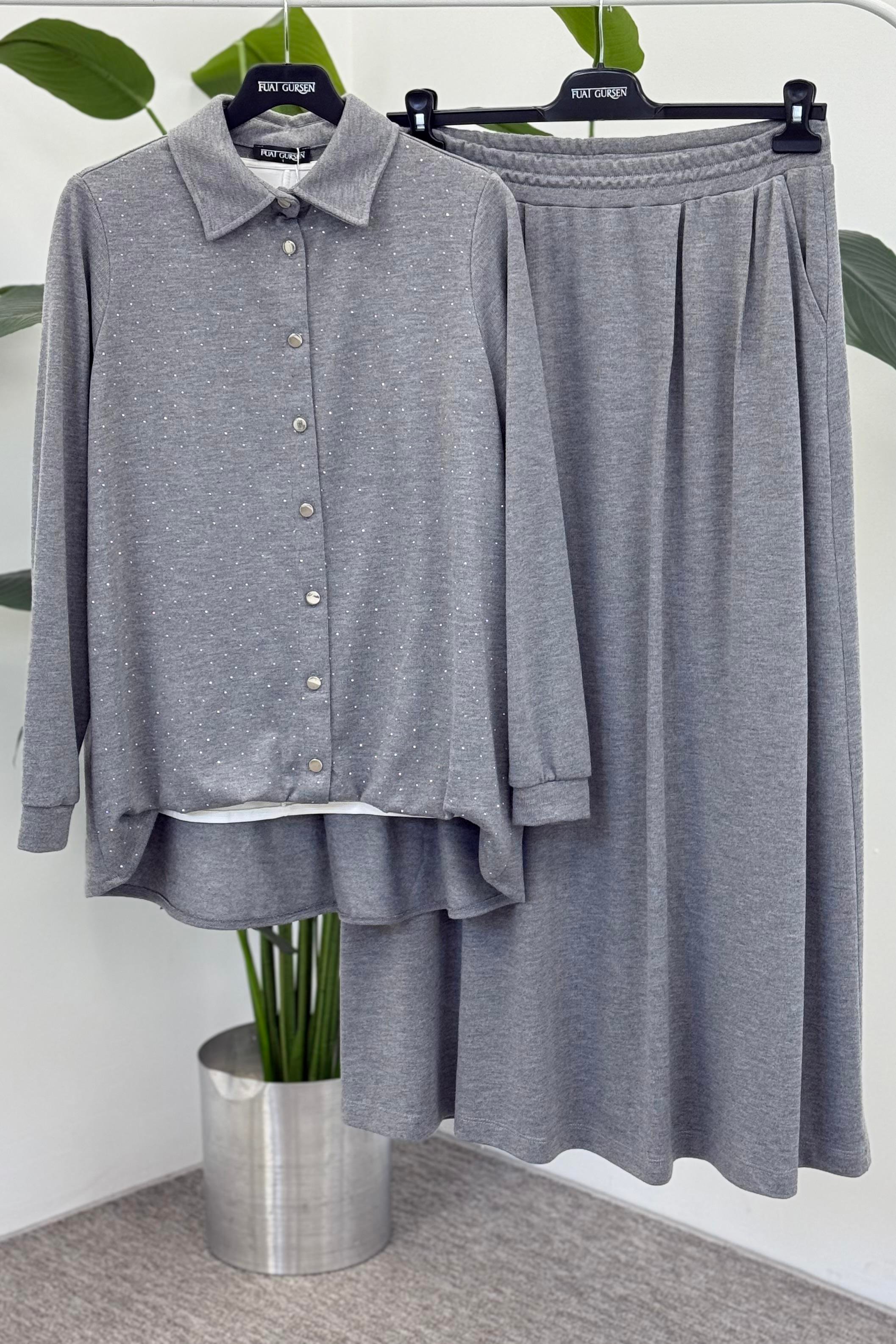 Fuat Gürşen 4362 Kendinden İçlik Detay Etekli Takım - Gri