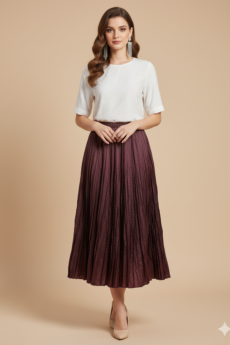 Fuat Gürşen 4426 Kırıştırma Etek - Bordo (360310904)