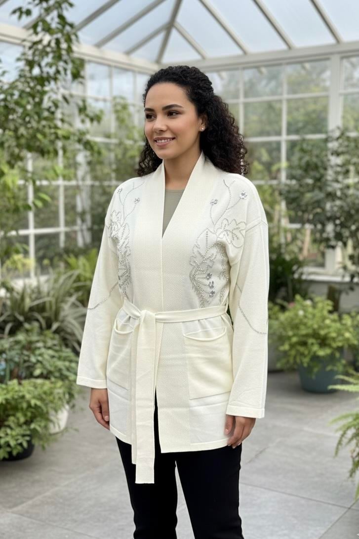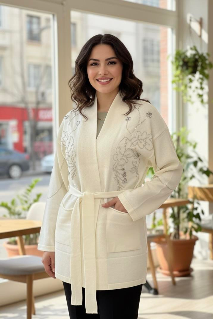 Fuat Gürşen 4612 İşleme Detaylı Hırka - Ekru