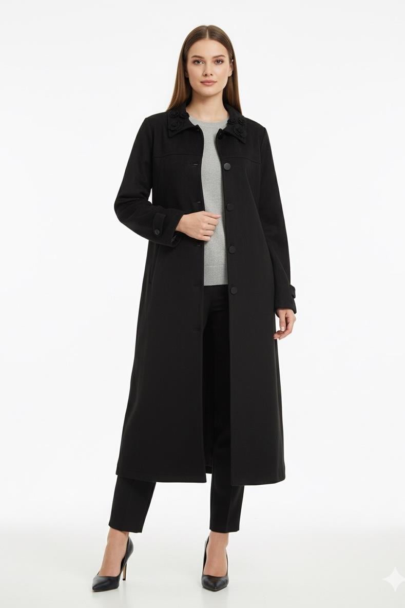 Fuat Gürşen 4629 Büyük B. Yaka Çiçek Aplikeli Kap - Siyah (378310917)