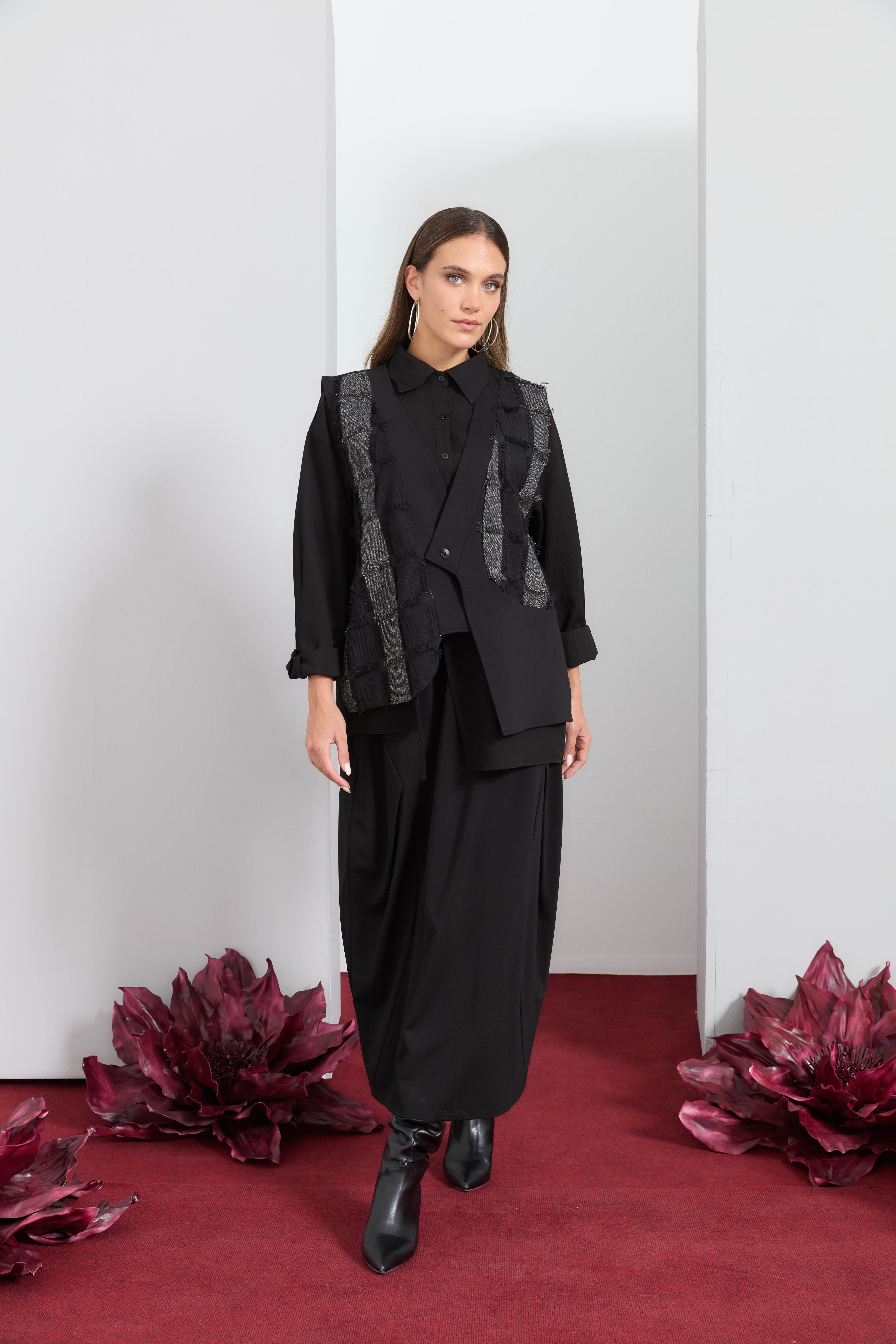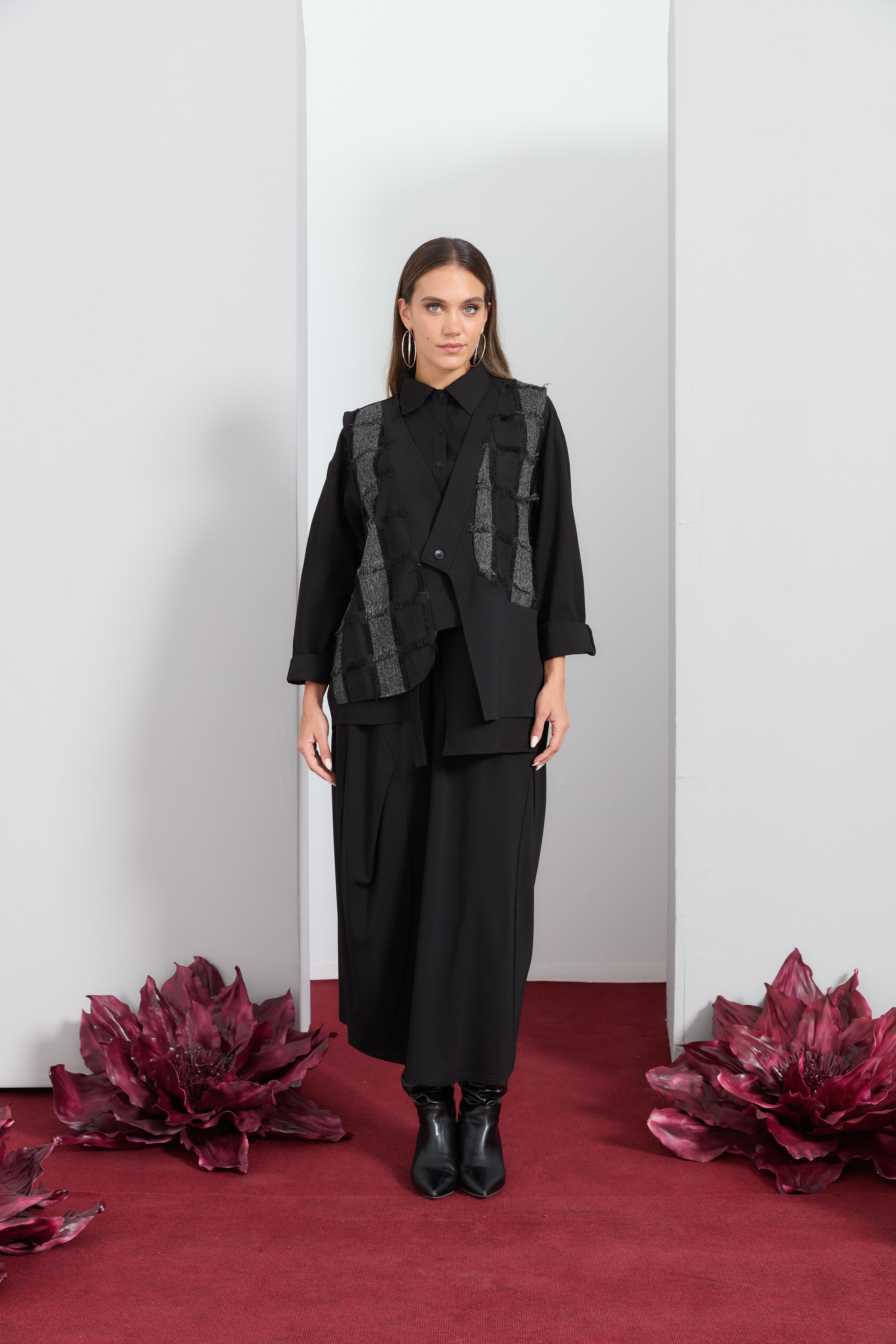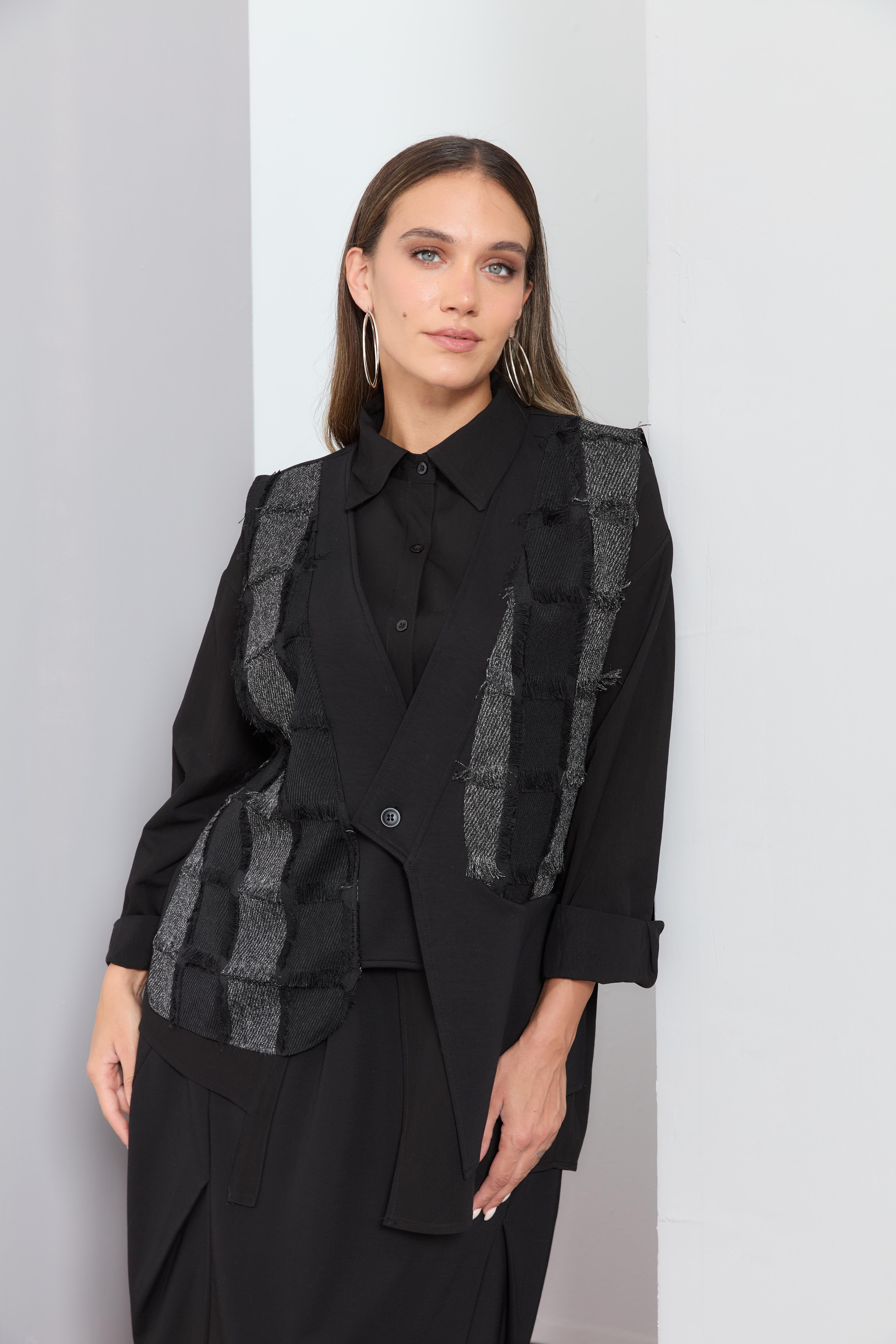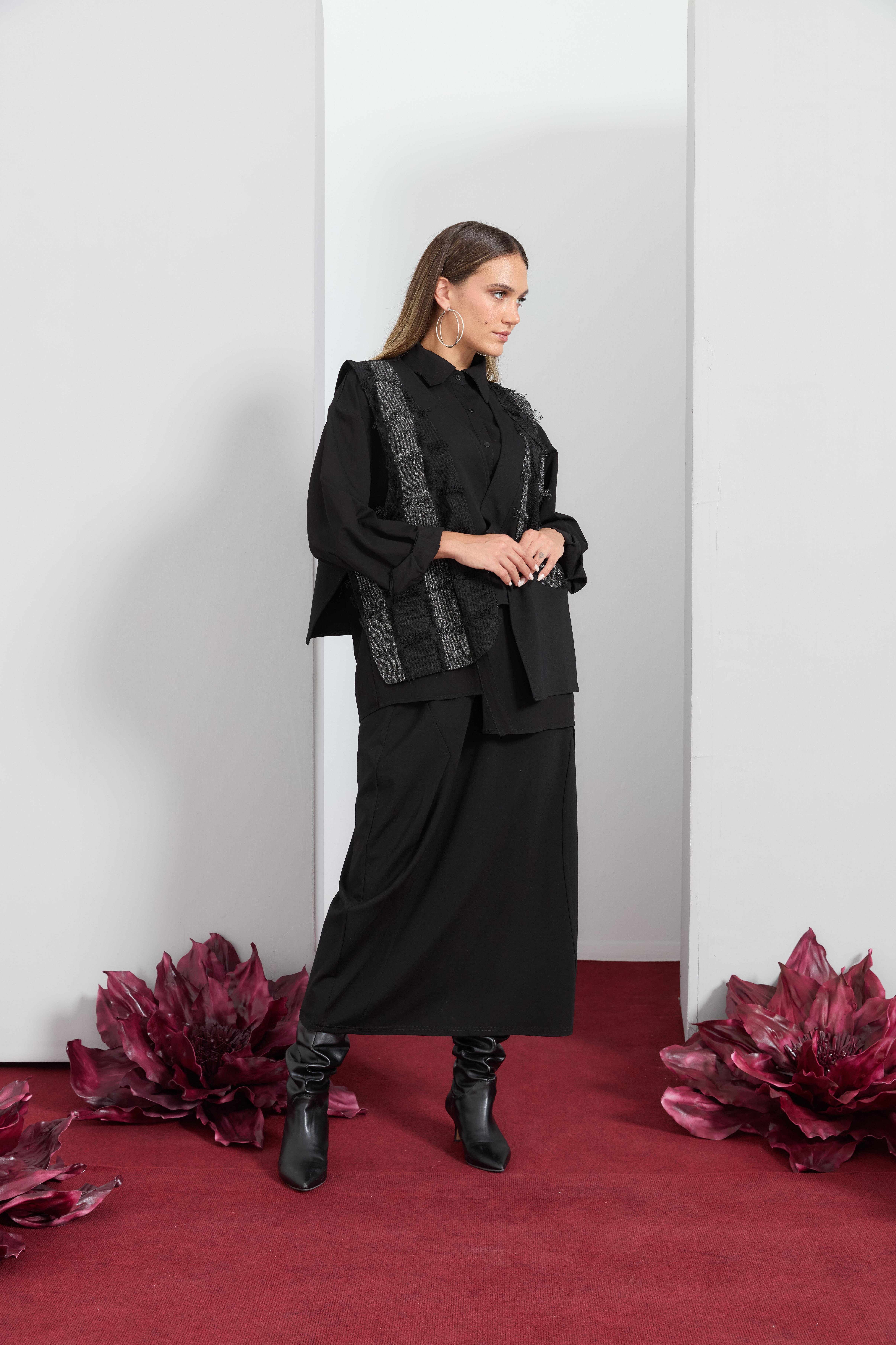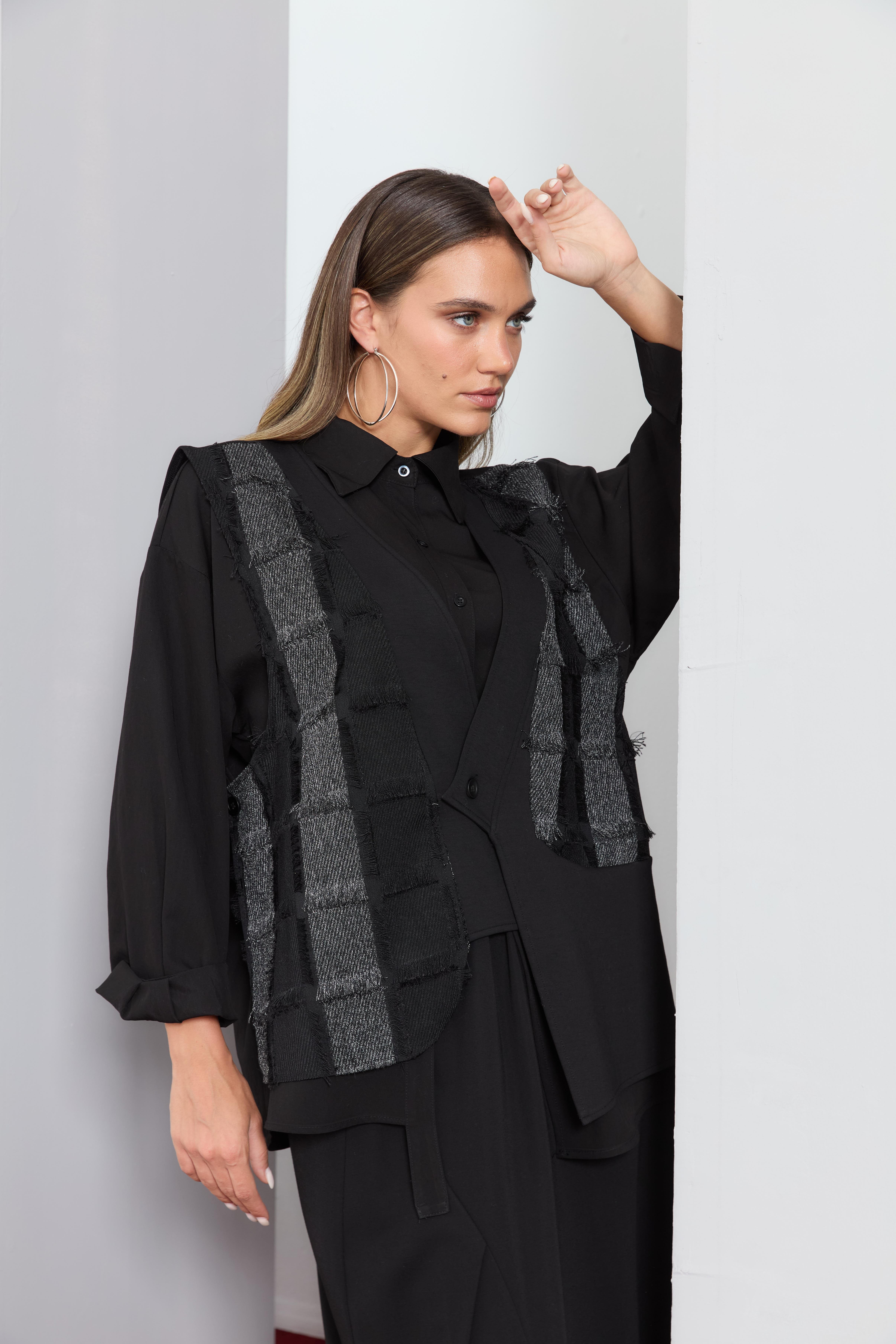 Fuat Gürşen 4713 Saçak Detay Gömlekli İkili Takım - Siyah