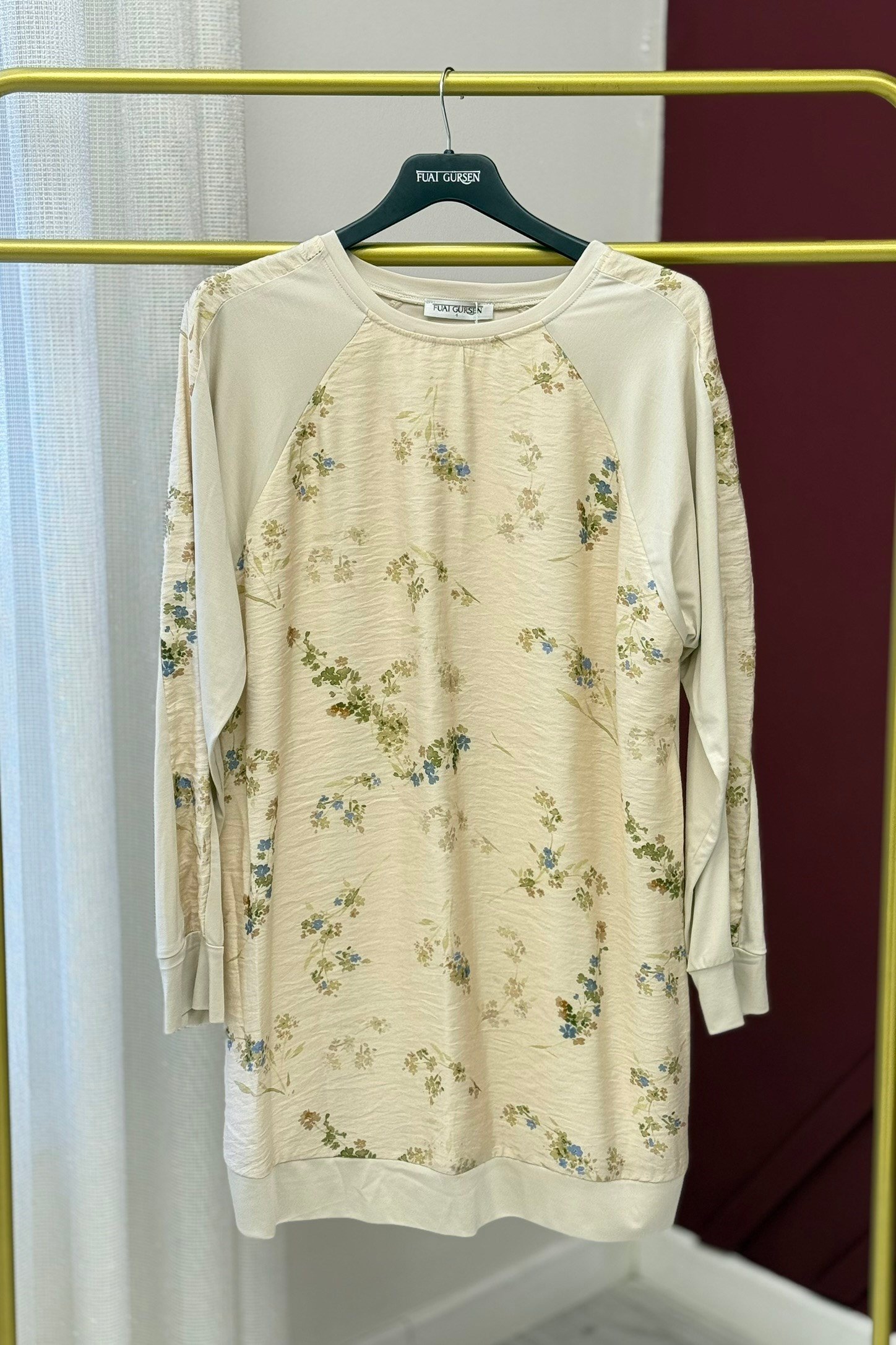 Fuat Gürşen 5335-1 Kendenden Jakar Baskılı Tunik - Bej - Çiçekli (462310125)