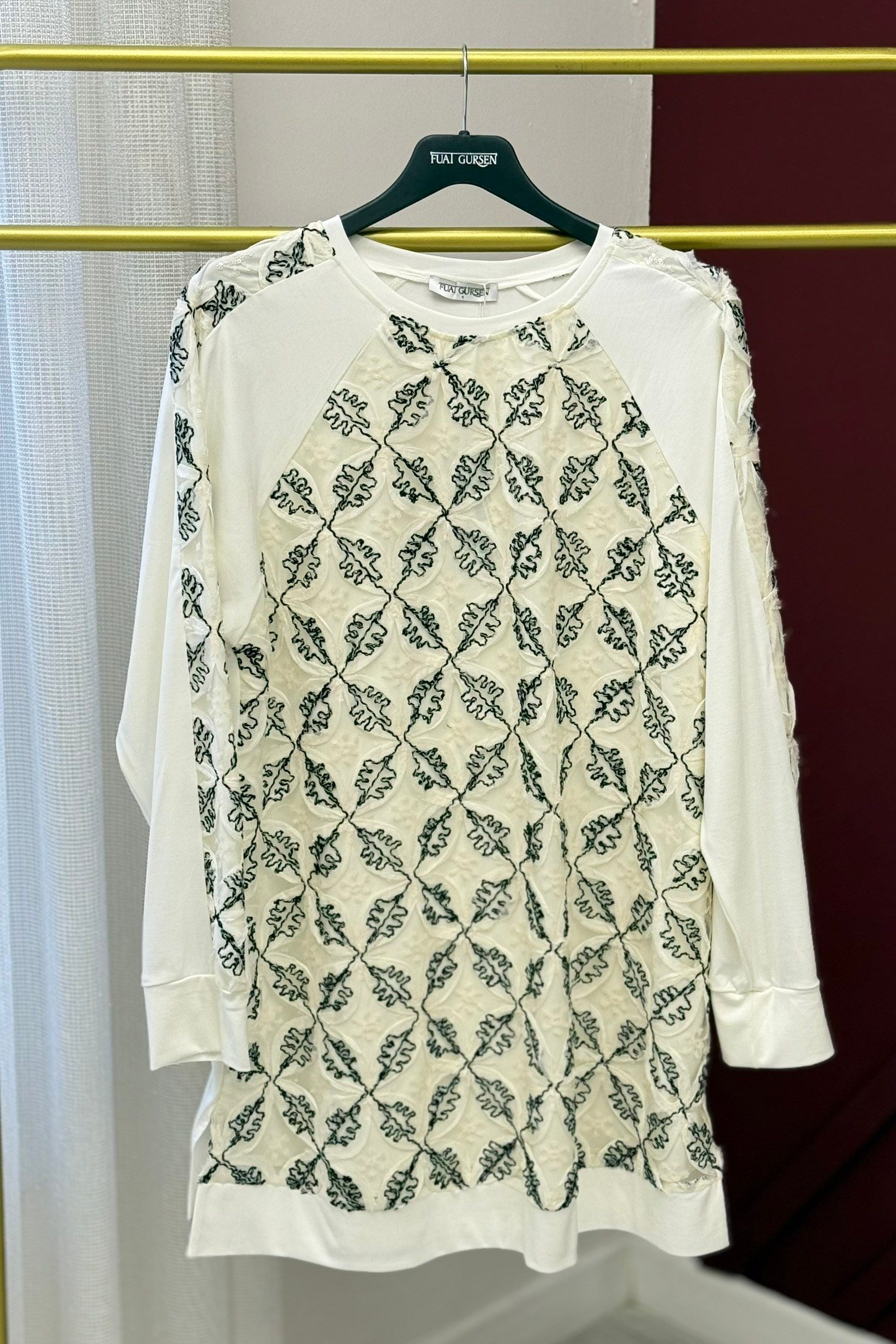 Fuat Gürşen 5335-1 Kendenden Jakar Baskılı Tunik - Ekru - Siyah