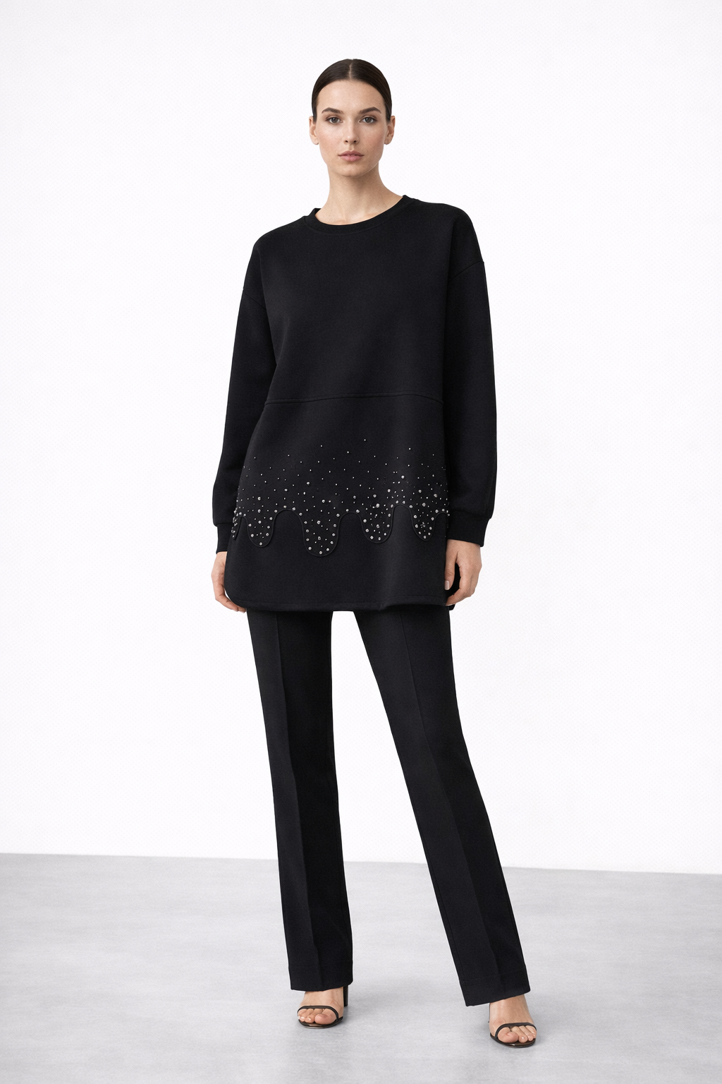 Fuat Gürşen 5344 Oval Kesimi Taş İşlemeli Tunik - Tek Renk