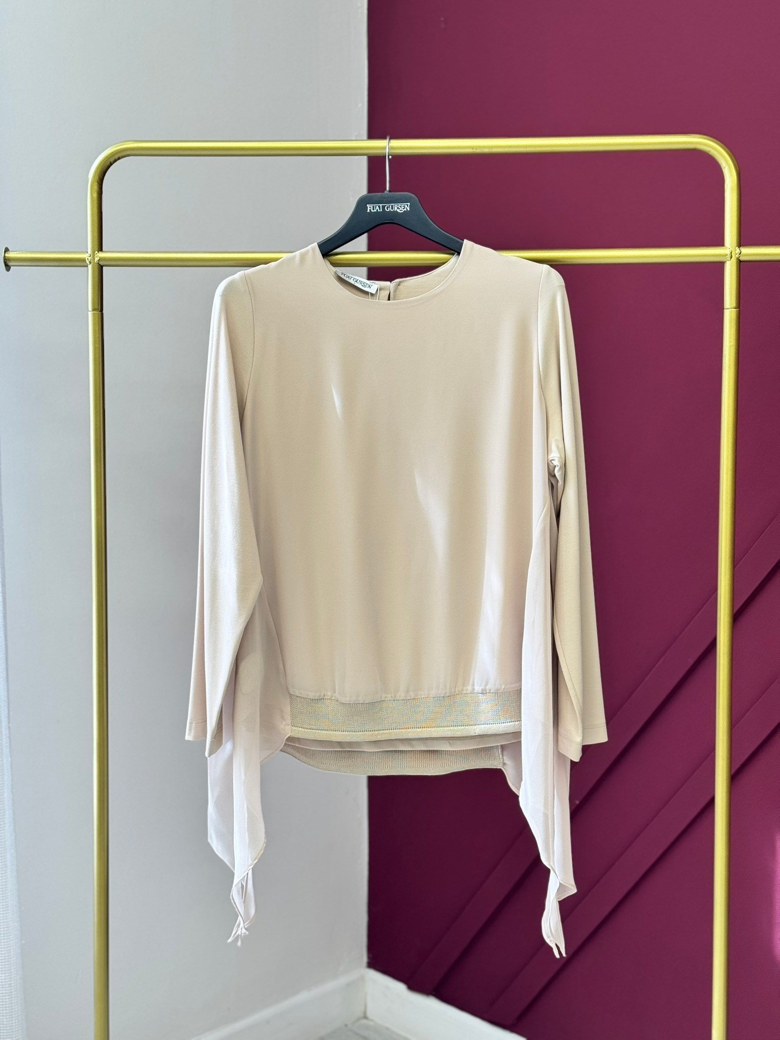 Fuat Gürşen 5360 Yanları Şifon Detay Bluz - Bej