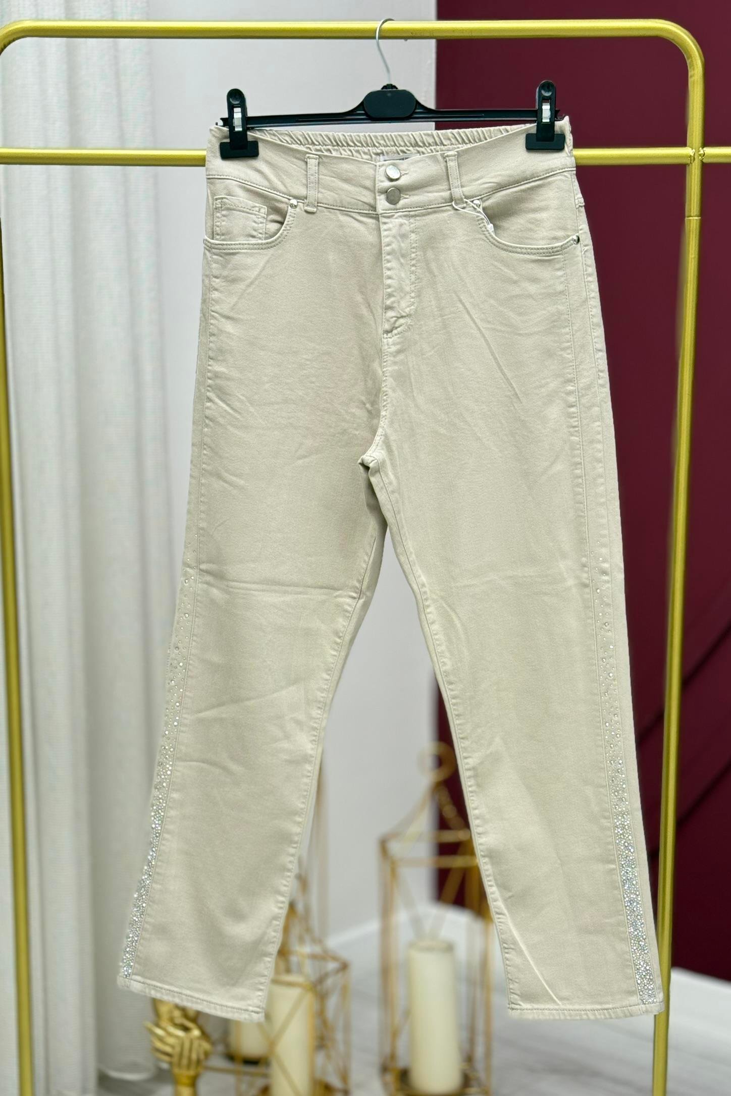 Fuat Gürşen 5413 Yan Taş İşlemeli Kot Pantolon - Bej