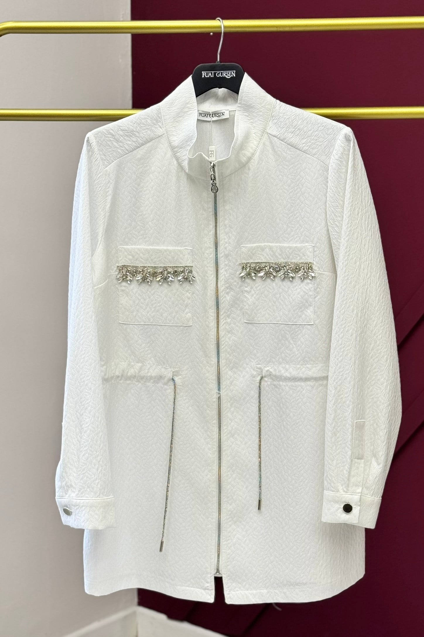 Fuat Gürşen 5656 Cep Taş İşlemeli Fermuarlı Kap - Ekru