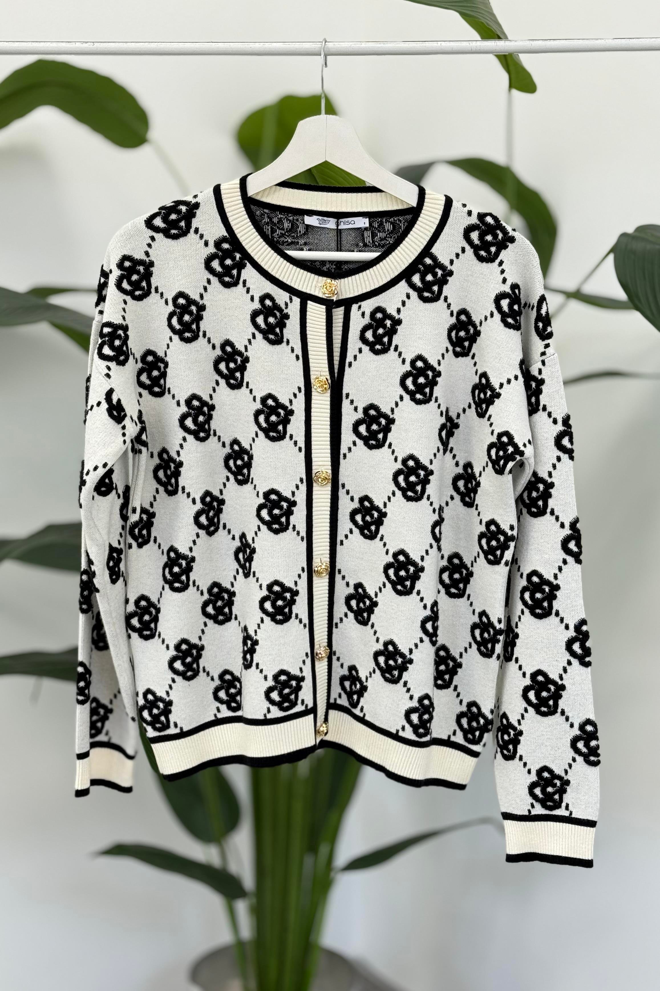 Ghisa 3082 Hırka - Beyaz - Siyah